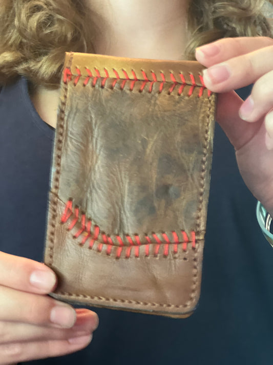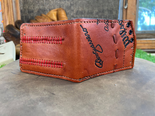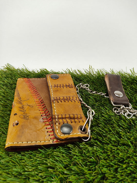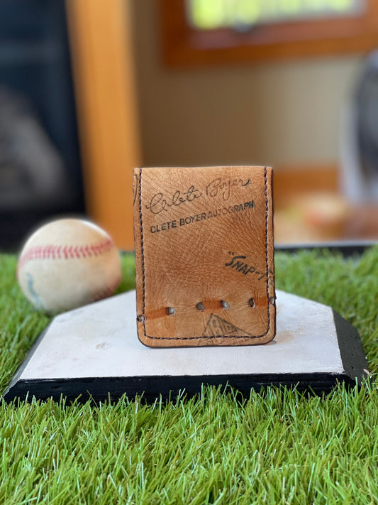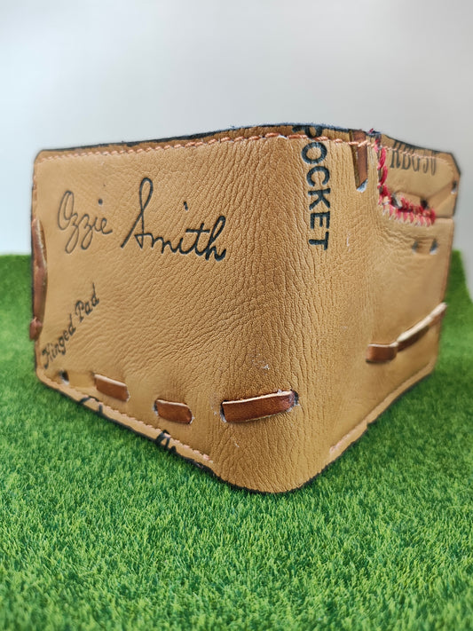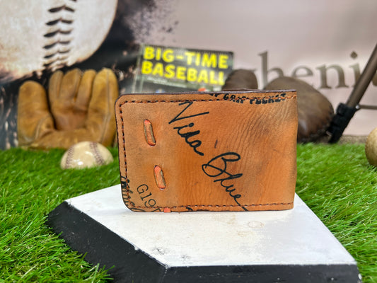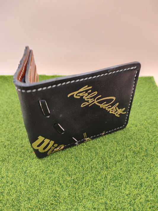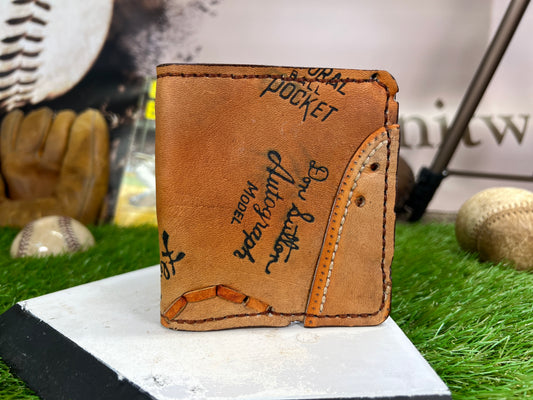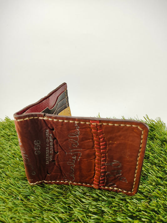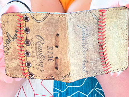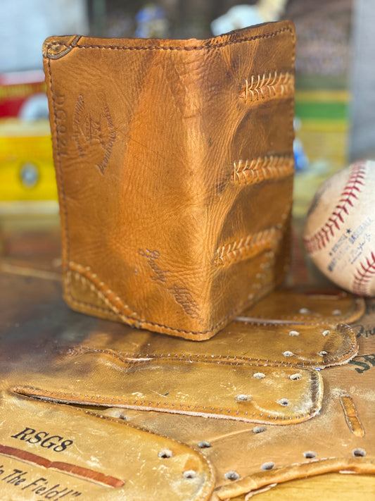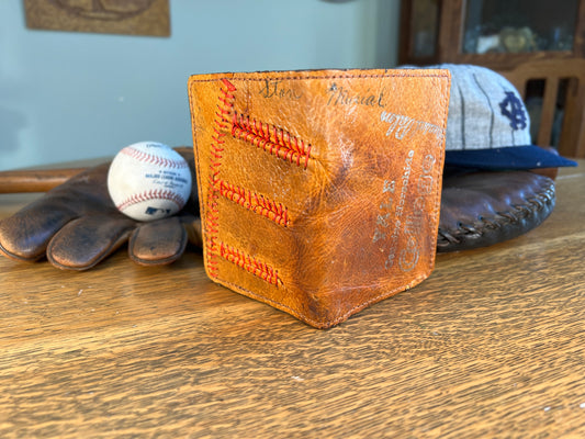 All of these wallets are unique, one of a kind, and made from used baseball gloves. You will find tons of character soaked into each wallet both from the years of usage from previous owners of the glove, as well as from the history of each signature player through the annals of baseball lore. Wether you're looking for a distinct way to express your style, a unique gift idea, or a conversation starting display piece, it would be hard to go wrong with one our vintage wallets made to give old gloves a new life.