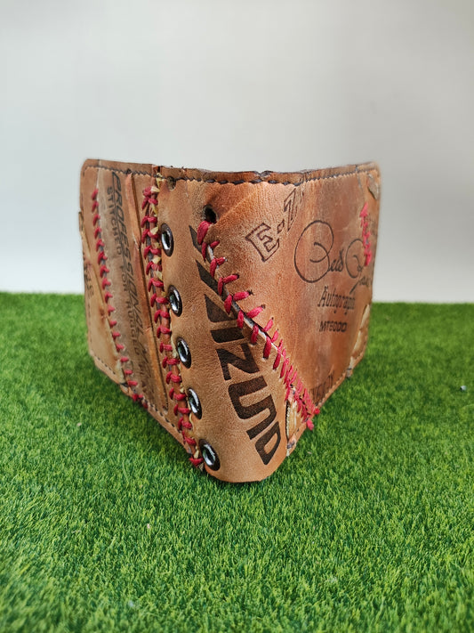 All of these wallets are unique, one of a kind, and made from used baseball gloves. Each comes with years of history of players through the annals of baseball lore. Wether you're looking for a distinct way to express your style, a unique gift idea, or a conversation starting display piece, it would be hard to go wrong with one our vintage wallets made to give old gloves a new life.