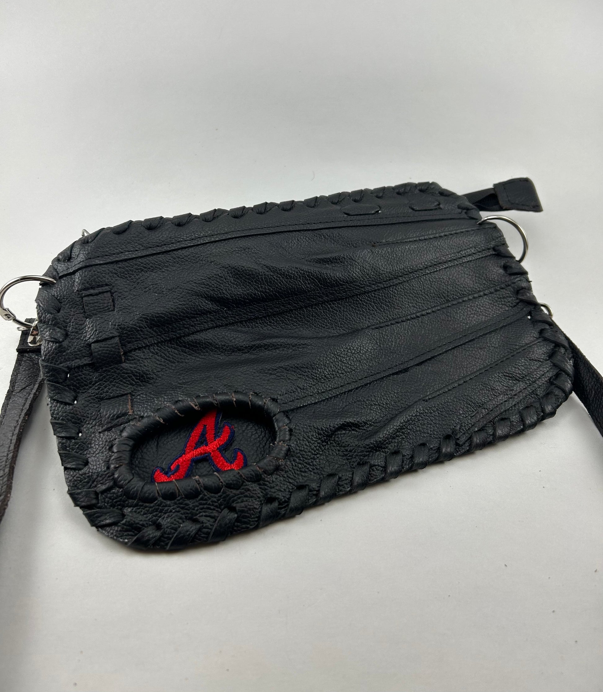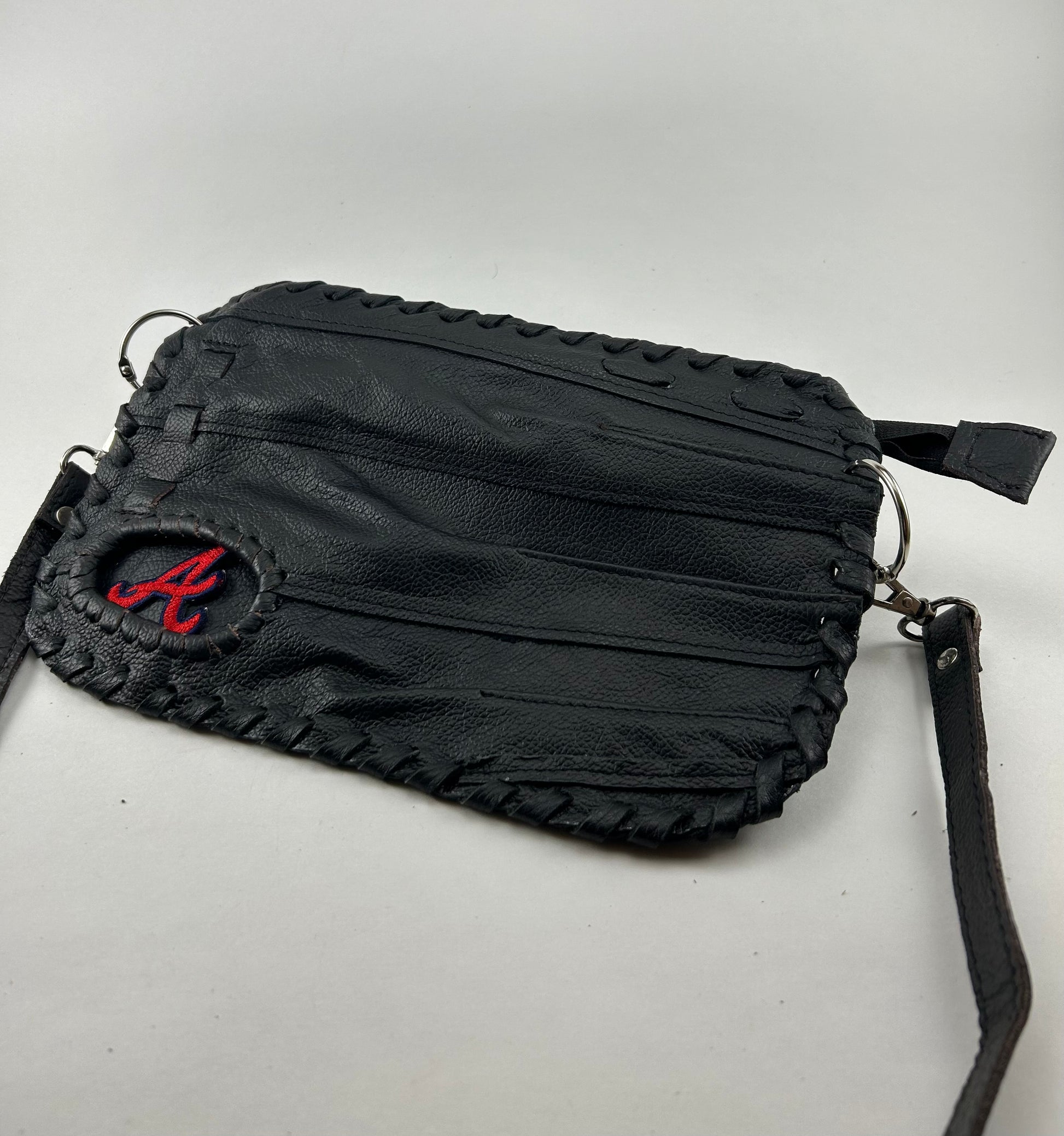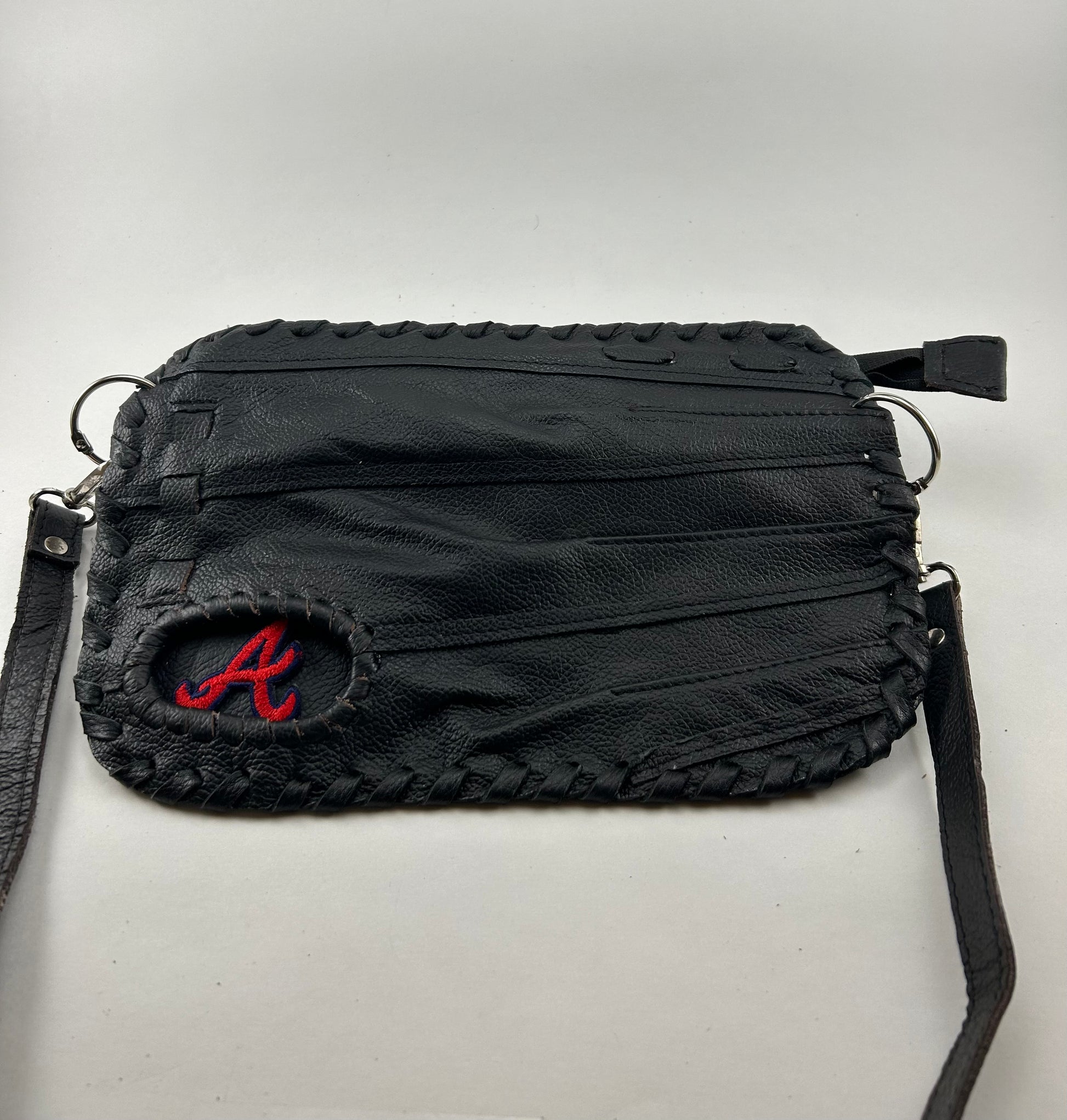 New for 2025! Our traditional brown finger glove purse has just gotten a stylish upgrade. And why not?! After brown, black is the next most popular color for baseball mitts! These new, sleek purses have a window that make most team logos really pop! They are the same size as our regular finger glove purses at 11in x 7in and a 46in cross-body strap.