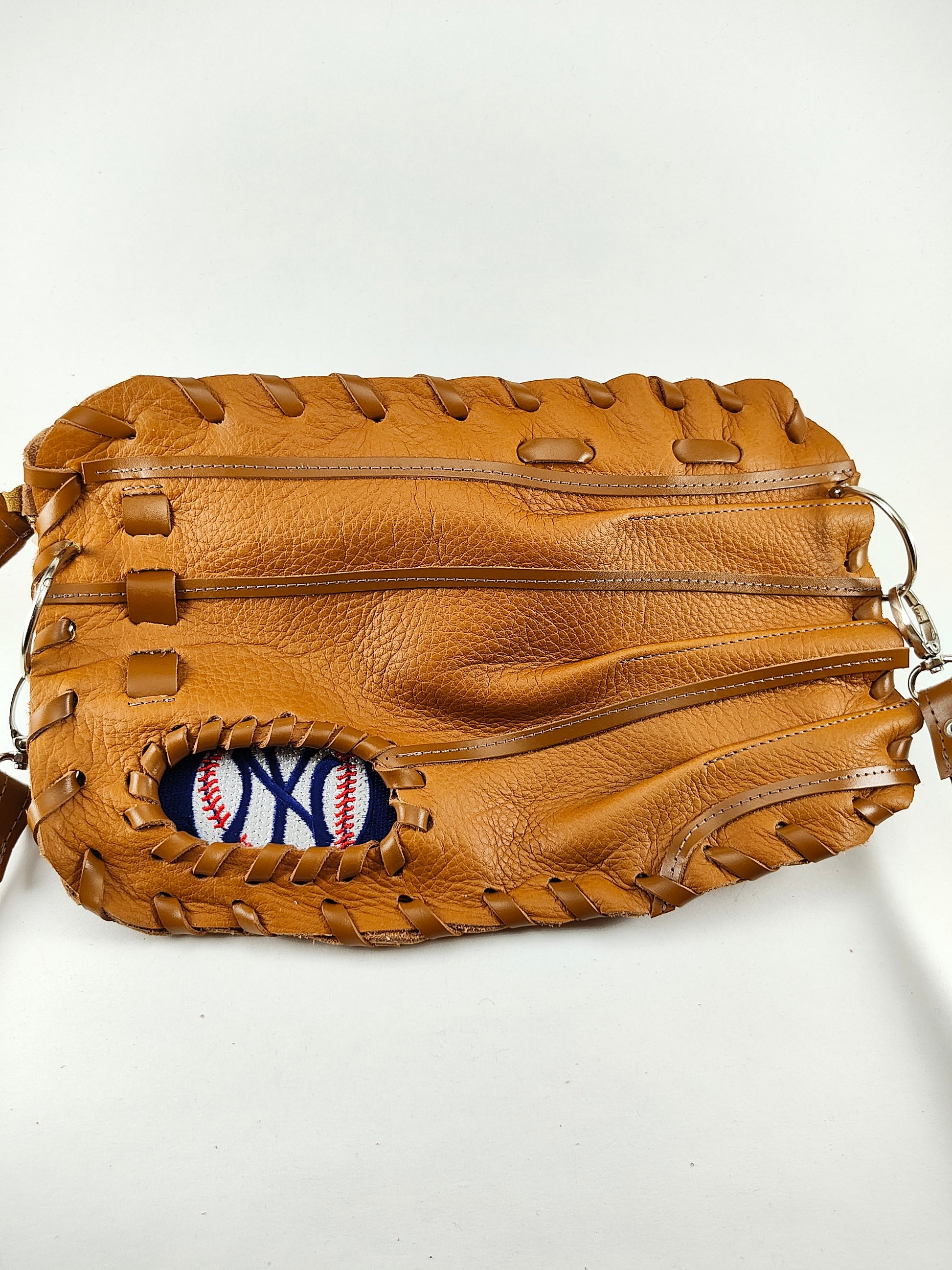 We are proud to introduce these new finger glove purses! Made from extremely fine leather, the craftmanship is top-notch! We had to search far and wide to find leather of this quality so we anticipate you all will enjoy them as much as we do. While not actually glove backs these purses are available at a significantly lower cost than the real glove backs. These glove purses are customizable as well, find the "Custom Patch" option. Other team logos are available on a custom basis. 100% real full grain leather with a regular fabric purse liner. The all leather strap can be used over the shoulder or crossbody. They measure 7" by 11" for that just right carry size.