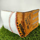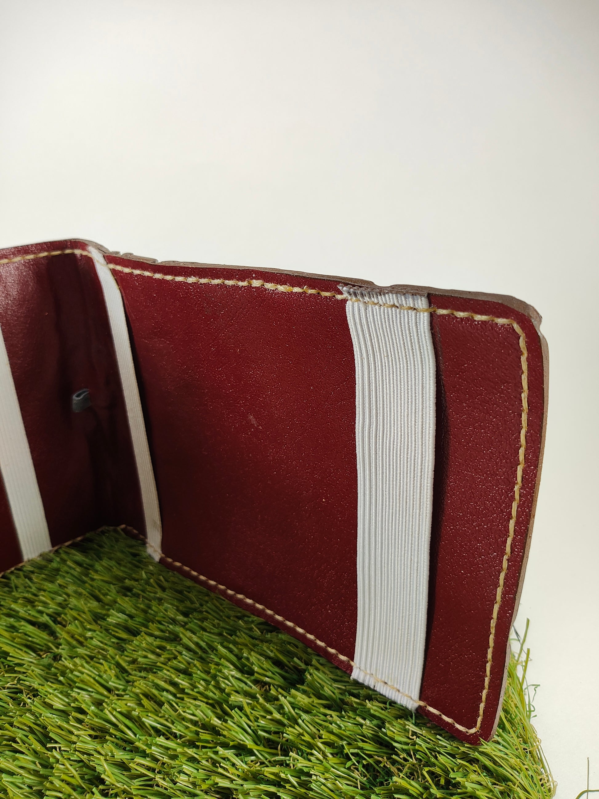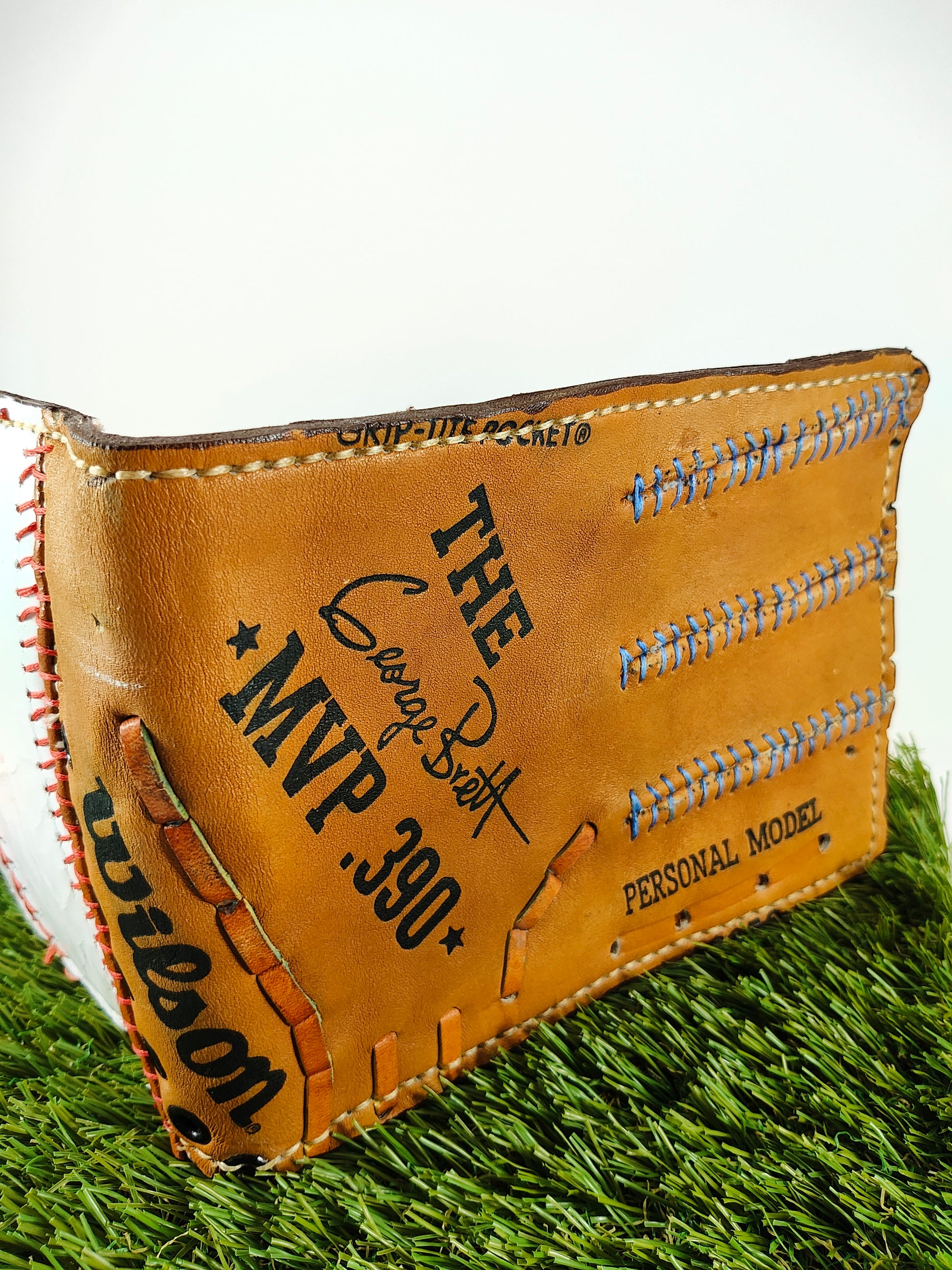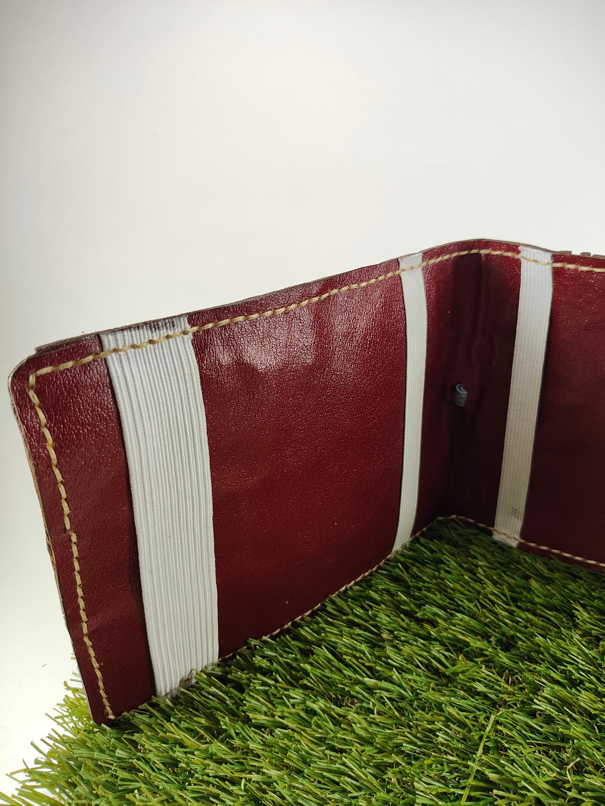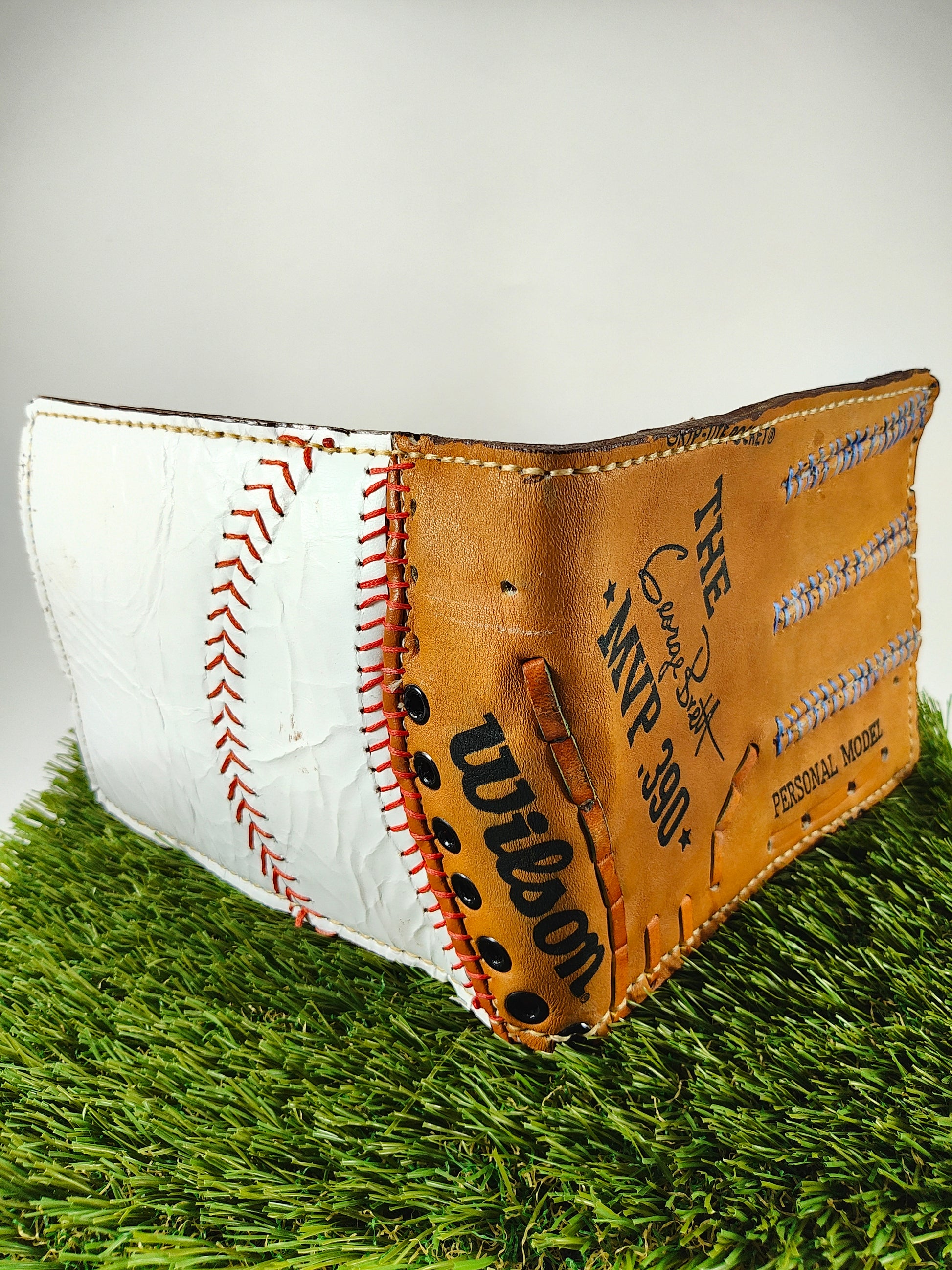 This golf scorecard holder demonstrates how we have to get inventive when we don't have enough baseball glove leather! Sometimes we take from other gloves but for this item we decided to salvage bits of a banner from a little league season and stitch the "cleaner" portions together to give it a very unique look. Measure about 7inches x 5 inches