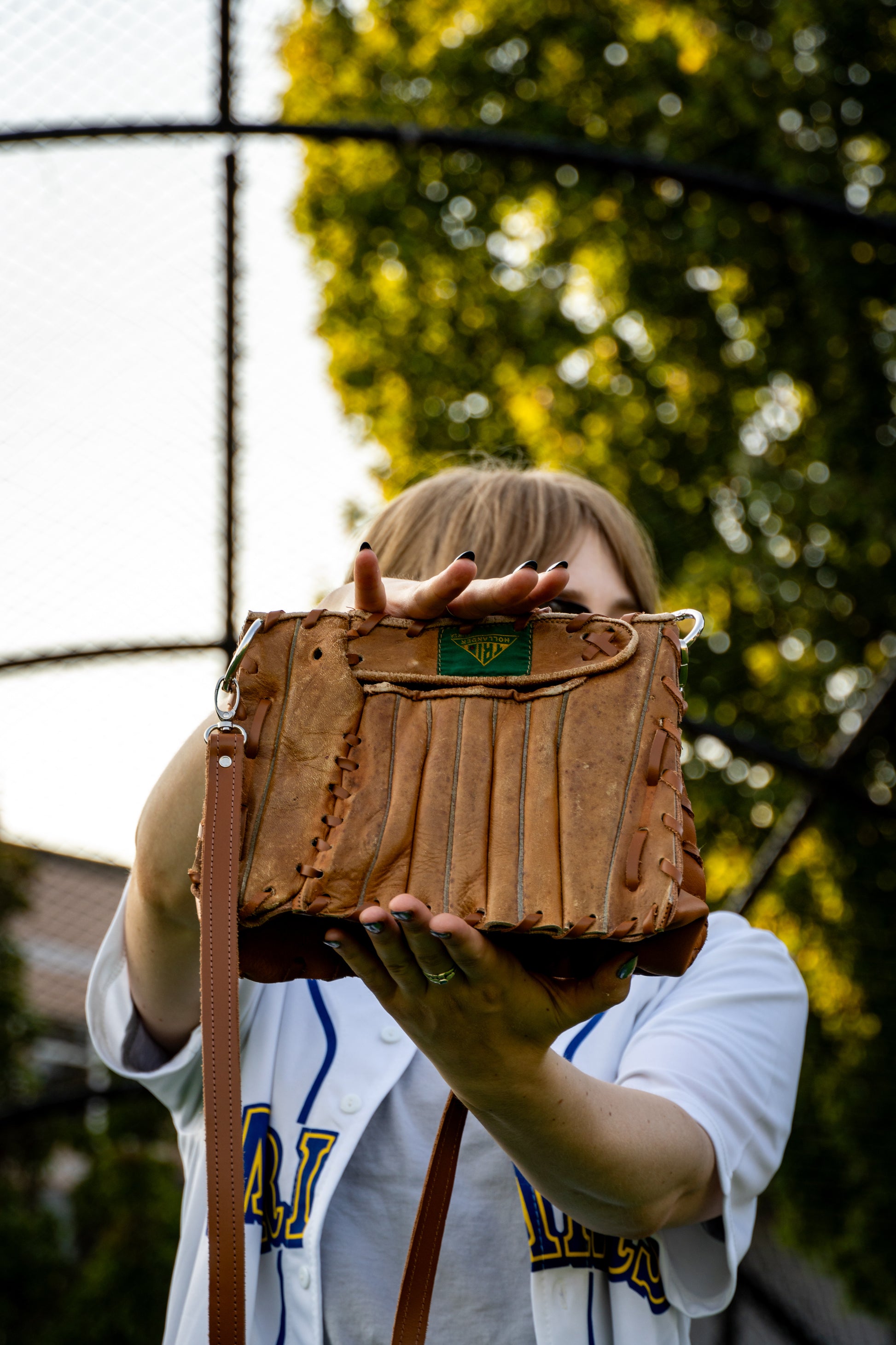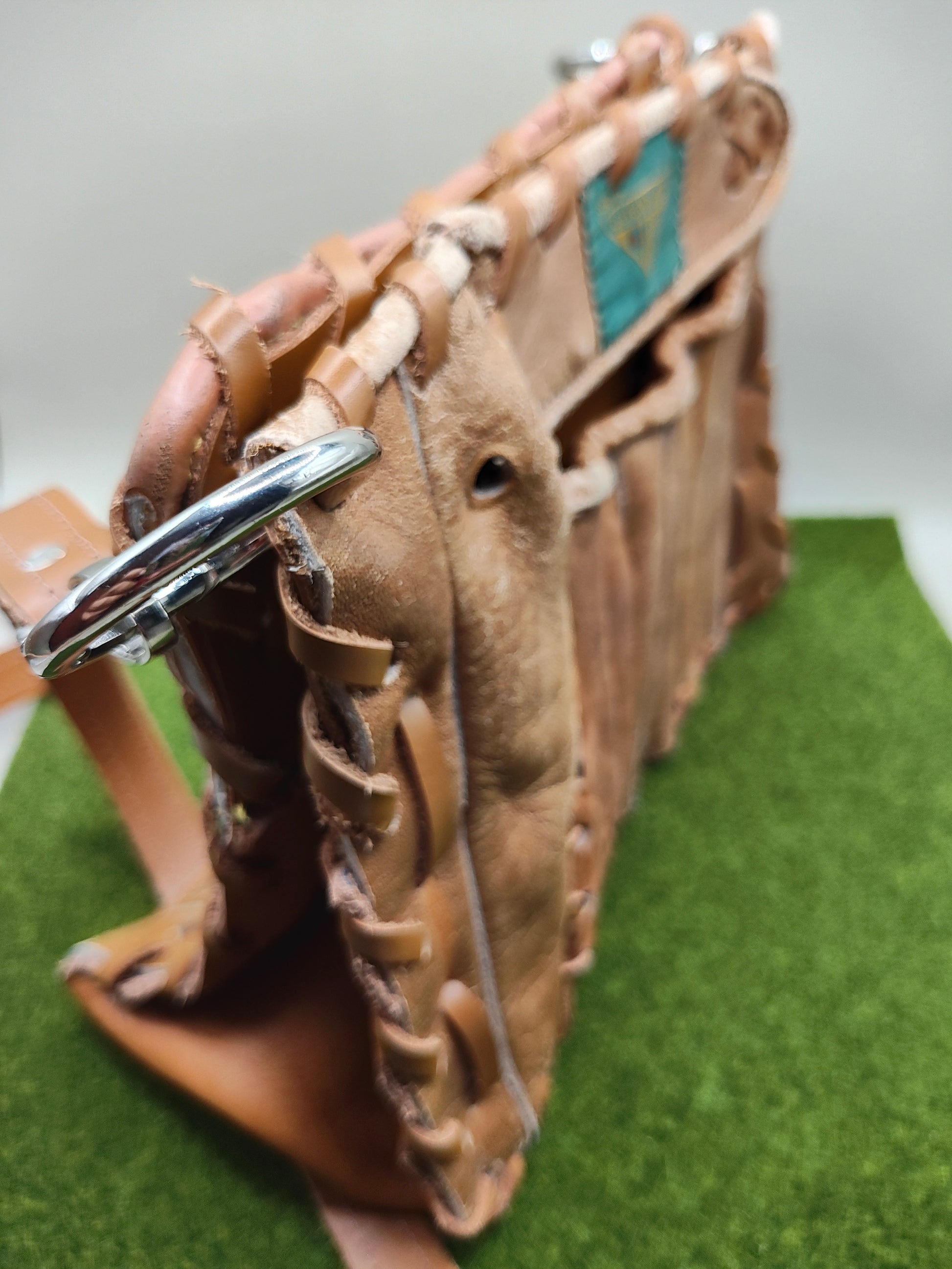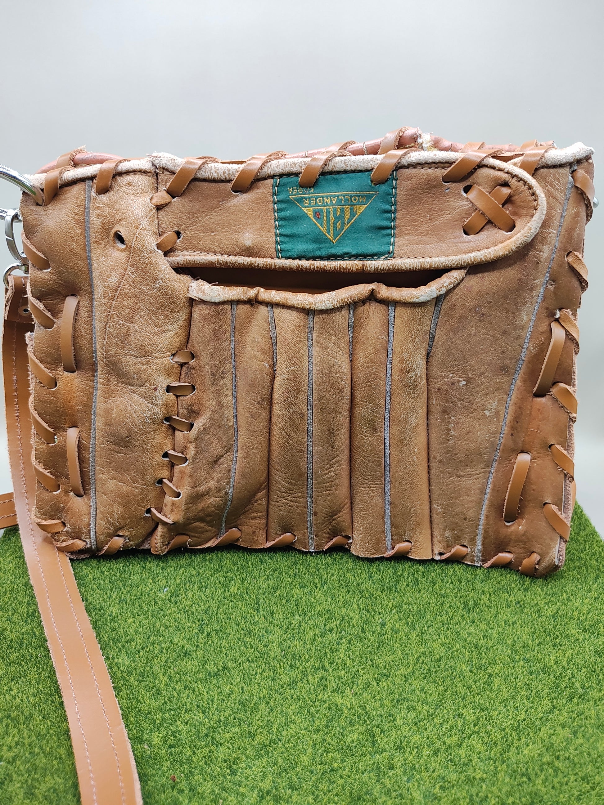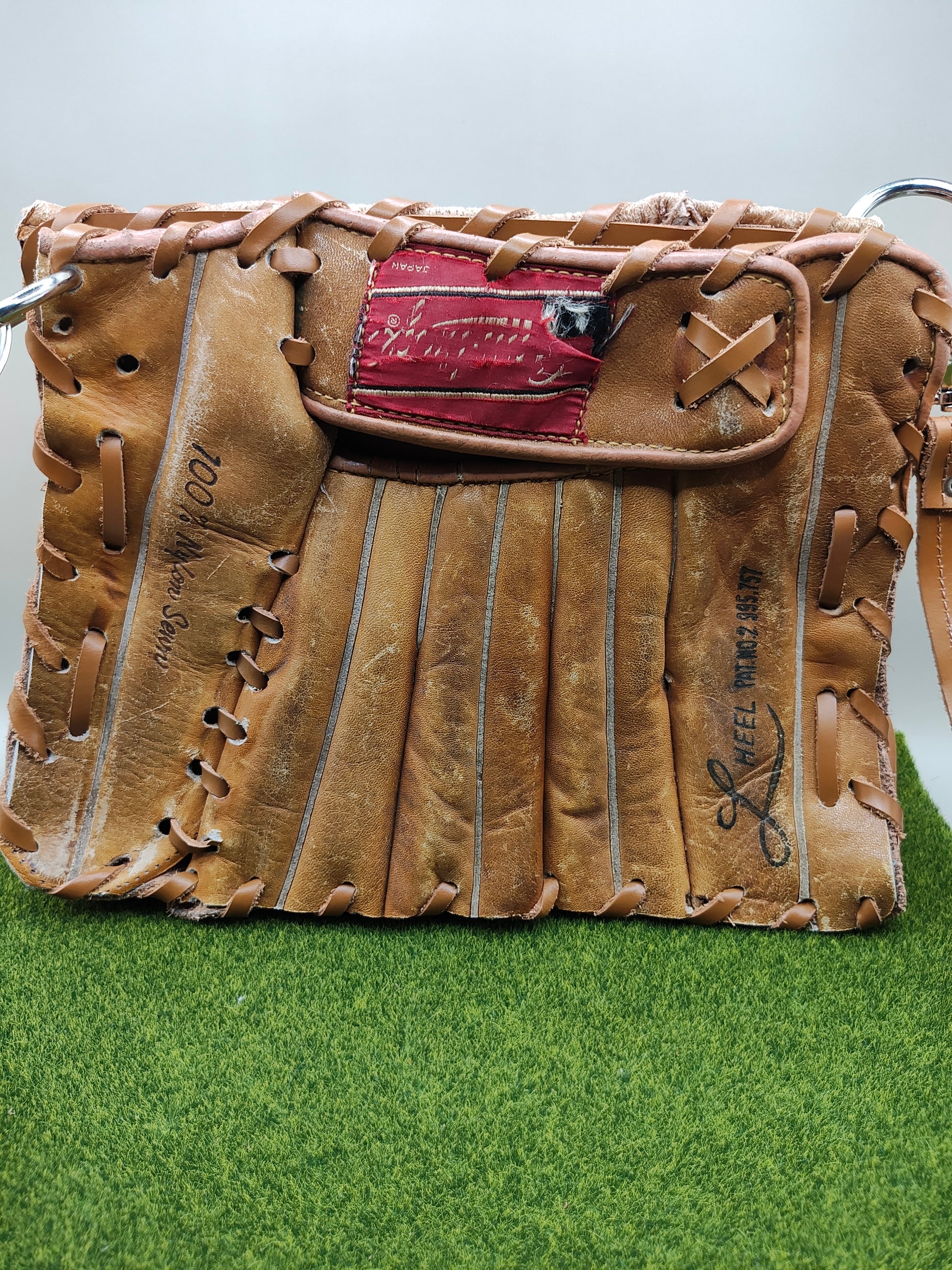 You'll be sure to turn heads and catch glances with these unique upcycled purses! This particular purse does not have signatures of the previous owner but you can still feel the spirit of the gloves that were once loved through the use of many games!