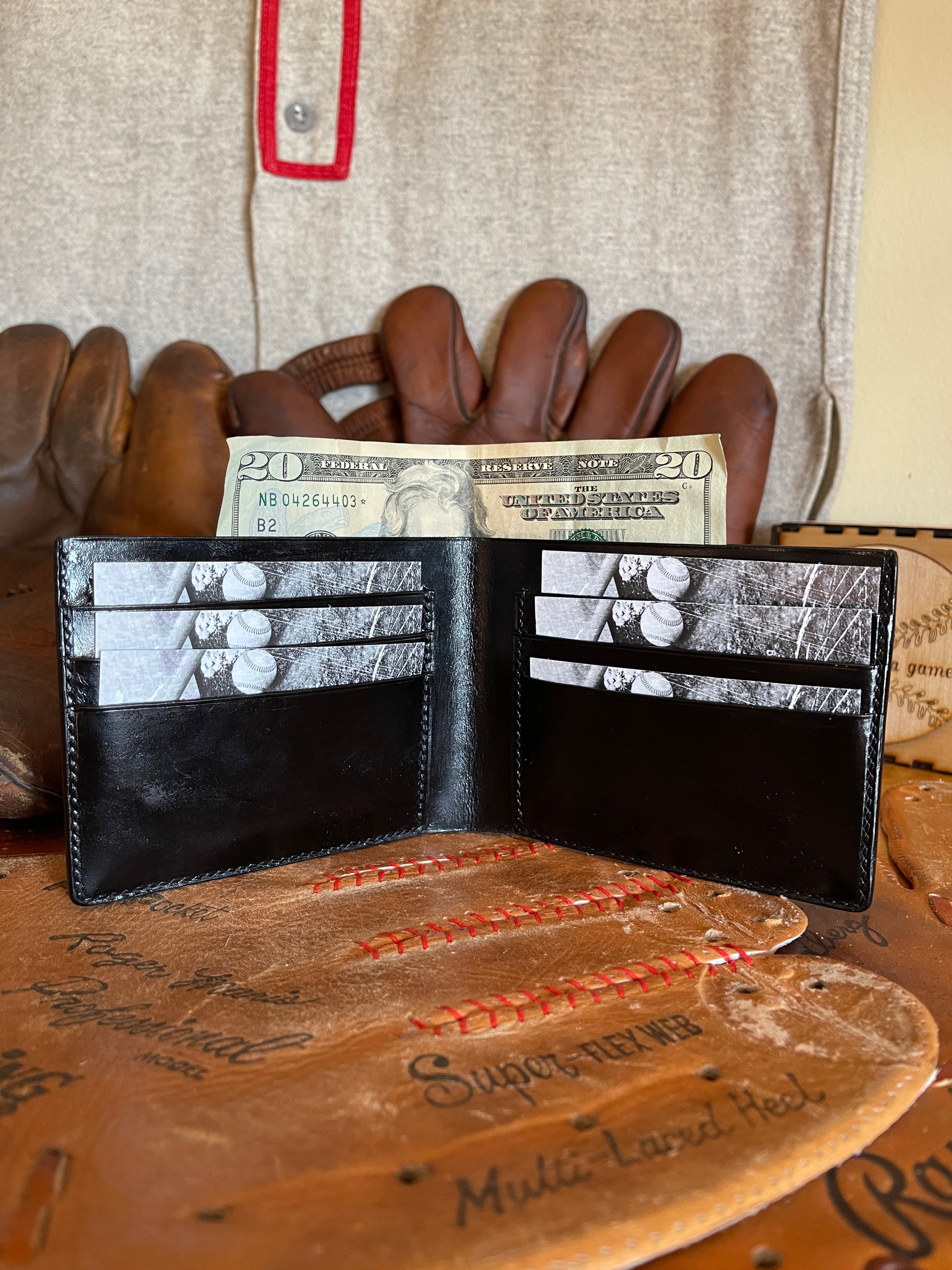 This wallet is another one of our leather carved art wallets we are more than delighted to bring you. Our artist has designed, free hand carved, and hand painted the likeness of Josh Gibson on to the front of the wallet. The portrait comes off the wallet, much like a 3-D image, so in person, you can feel the details. Aside from the incredible carved art, there is functionality on the inside with multiple top load card pockets and a full length cash slot.