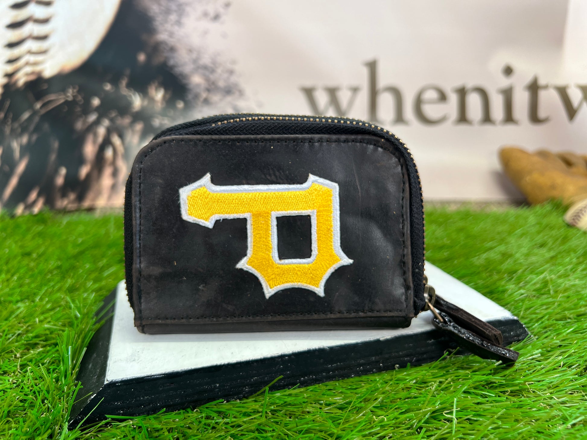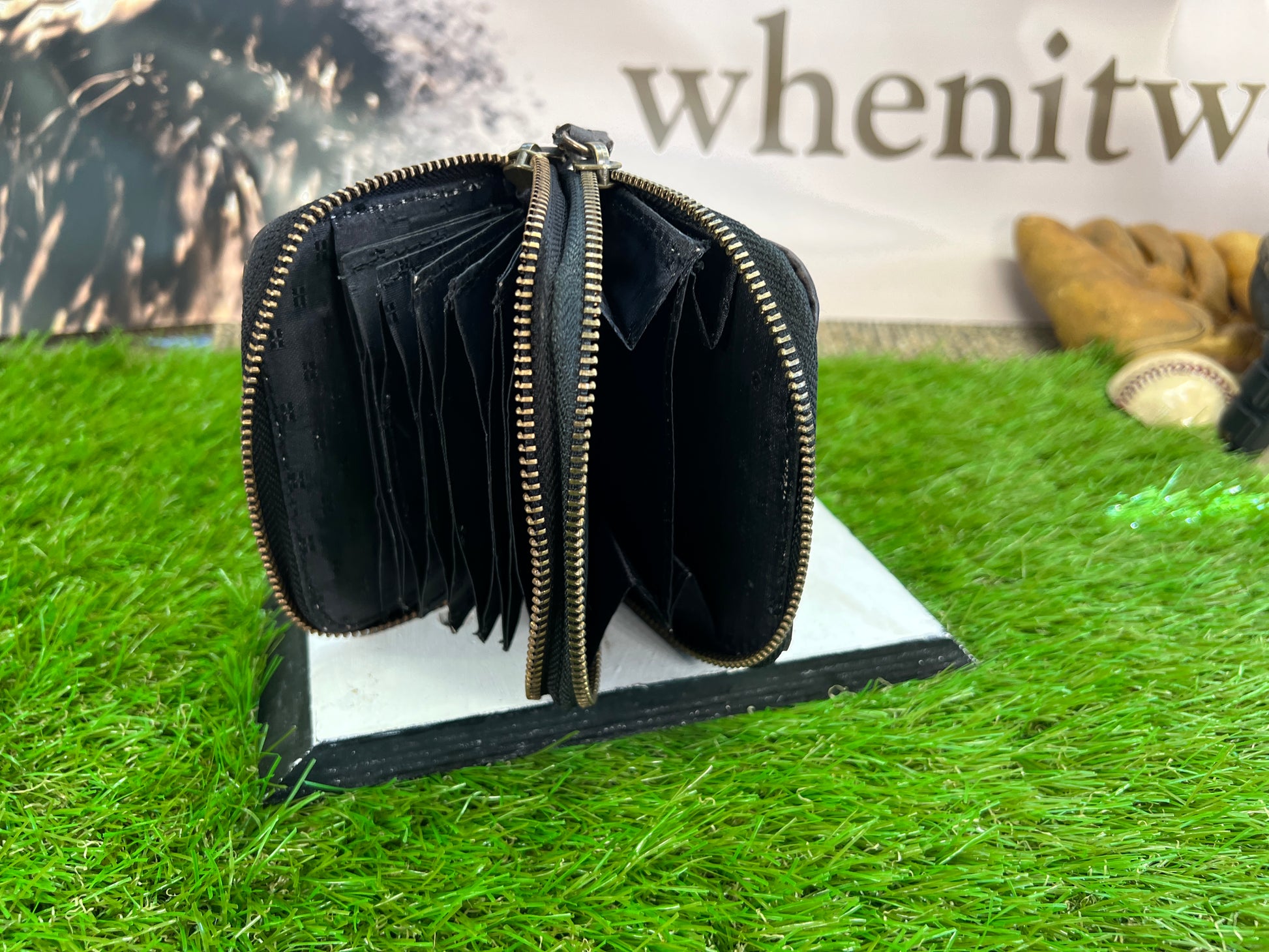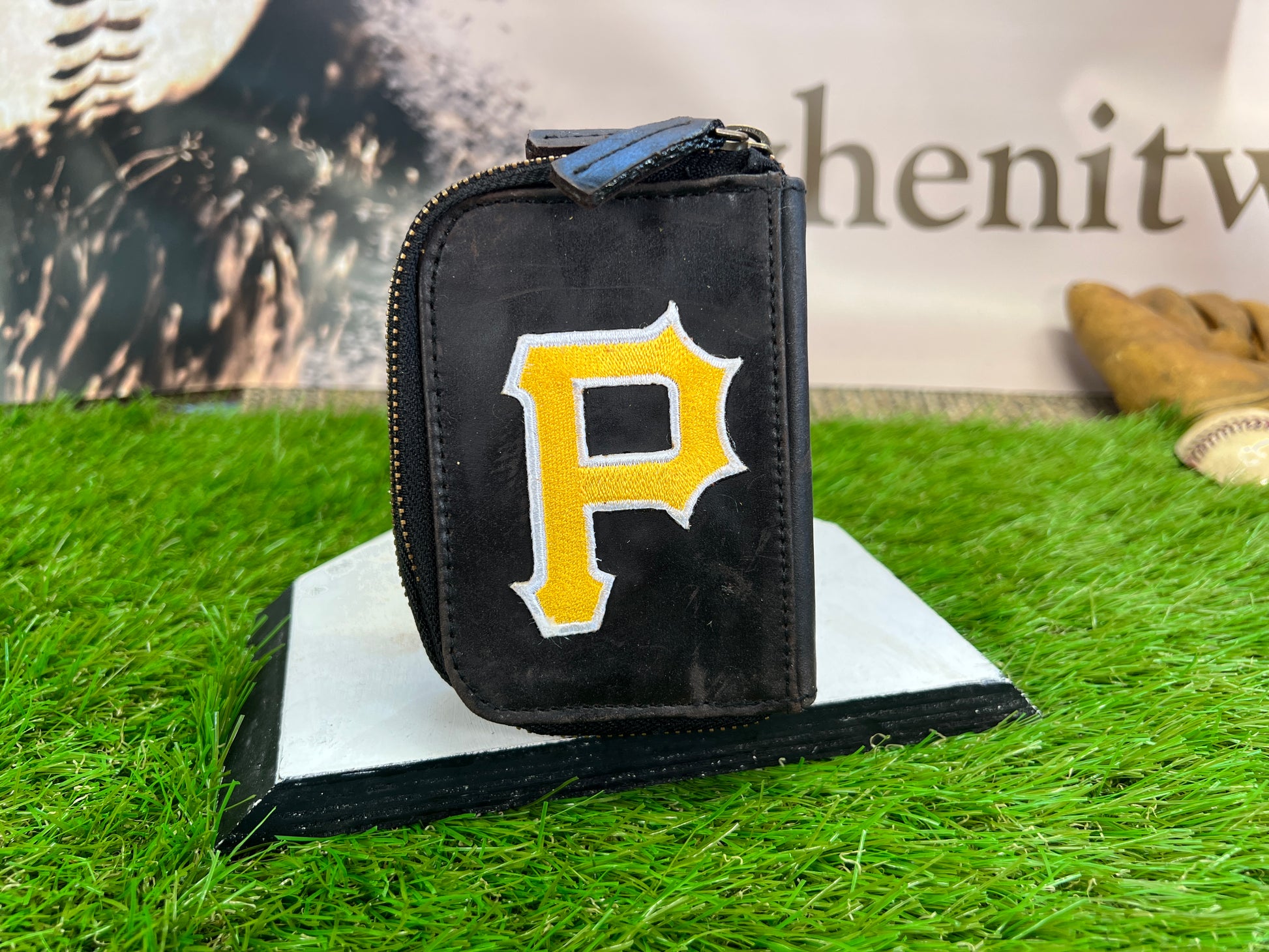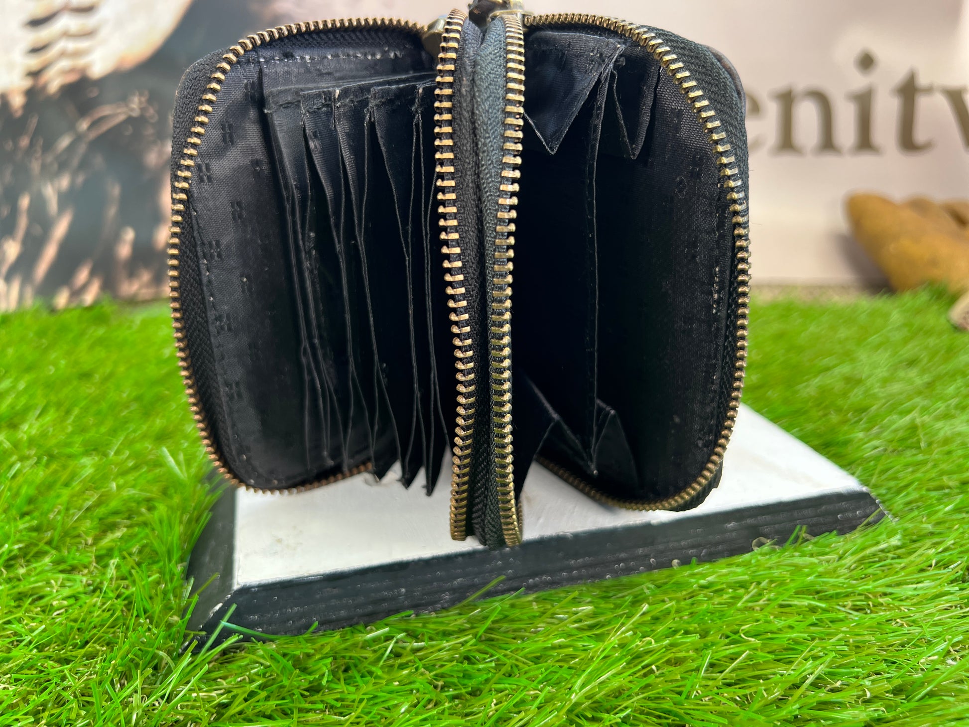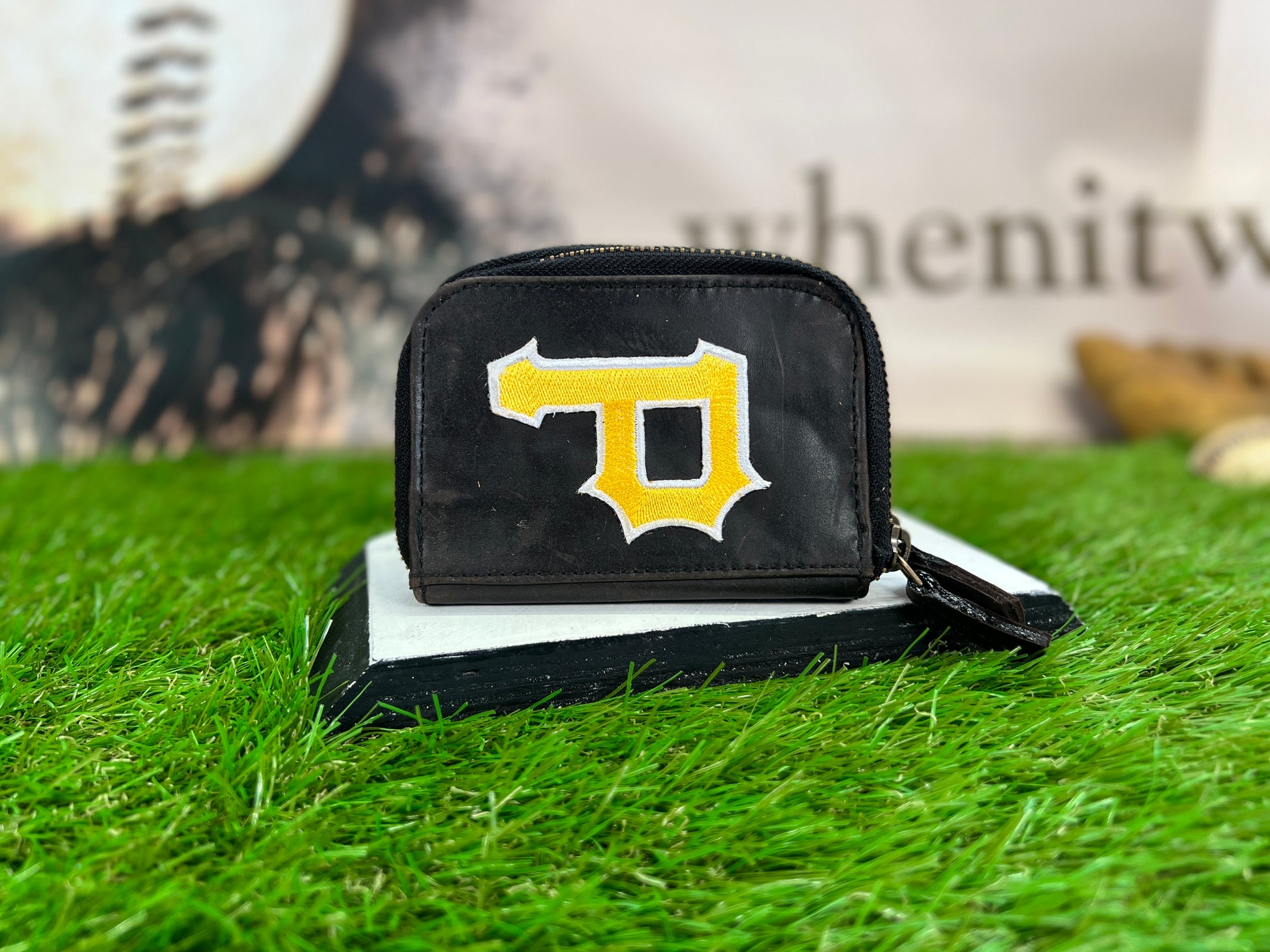 One of our newest products. We call this the Keychain Wallet. This wallet is a personal sized, double zippered, loaded with card pockets and cash room. One side is a clear ID holder, and the other side is ready for your favorite team logo, or special lasered design or name. We can add the keychain of your choice or a leather wrist strap. Available in three shades, tan, medium brown, and dark brown all are real leather. Take a close look at the pictures and the convenience of have two zippered compartments for security. This little beauty measures 5" by 3.75" by 1" when empty.