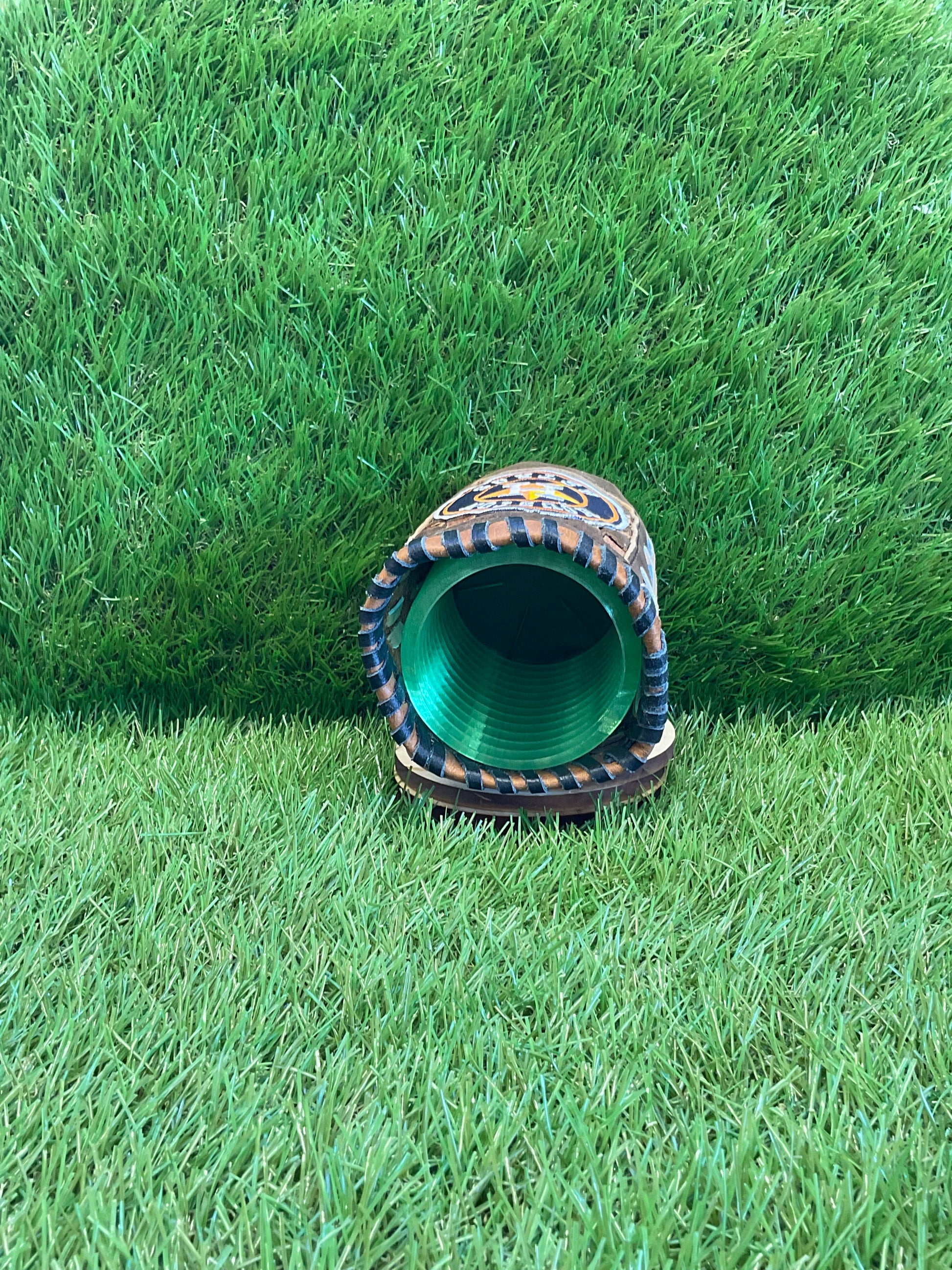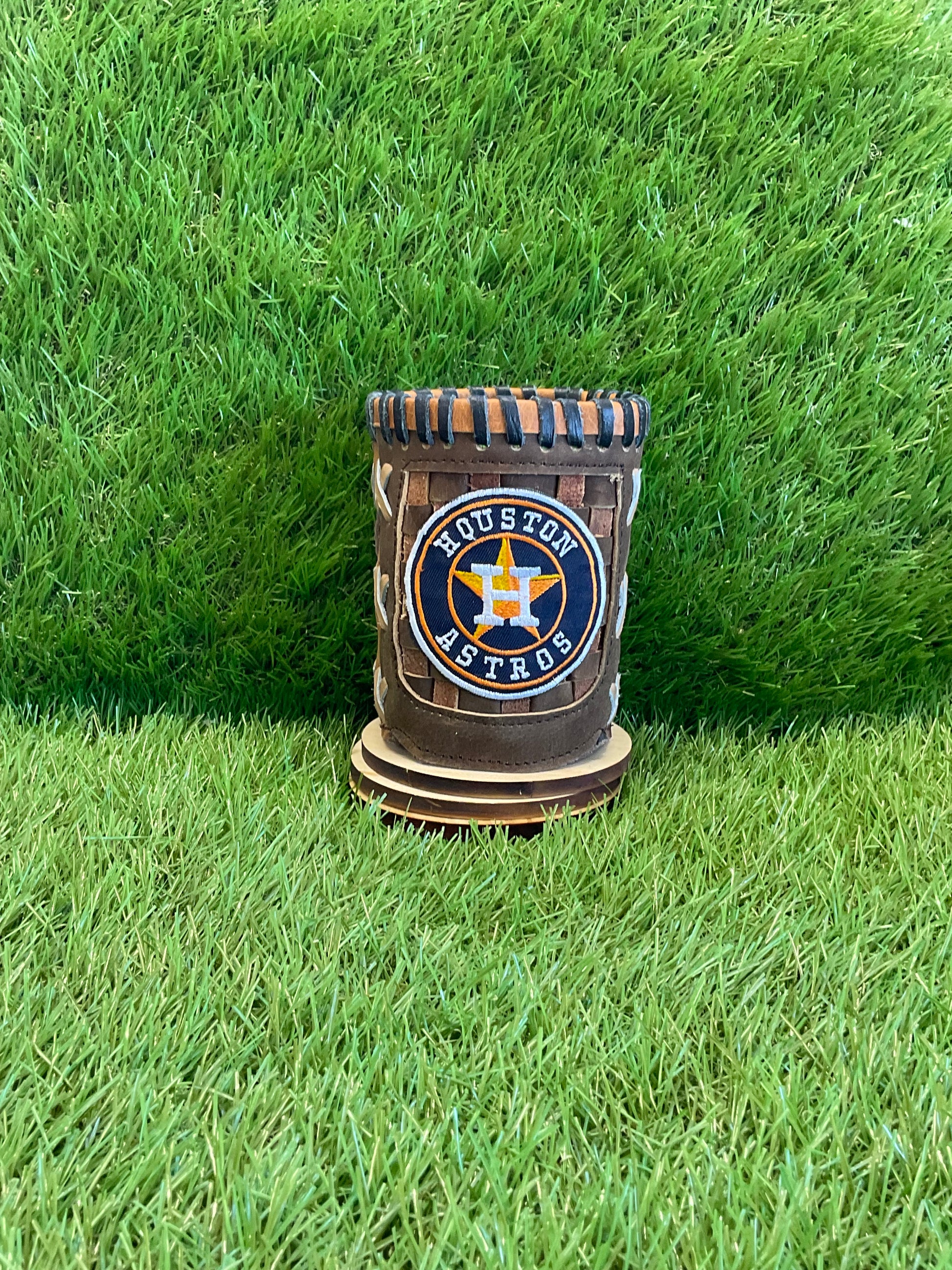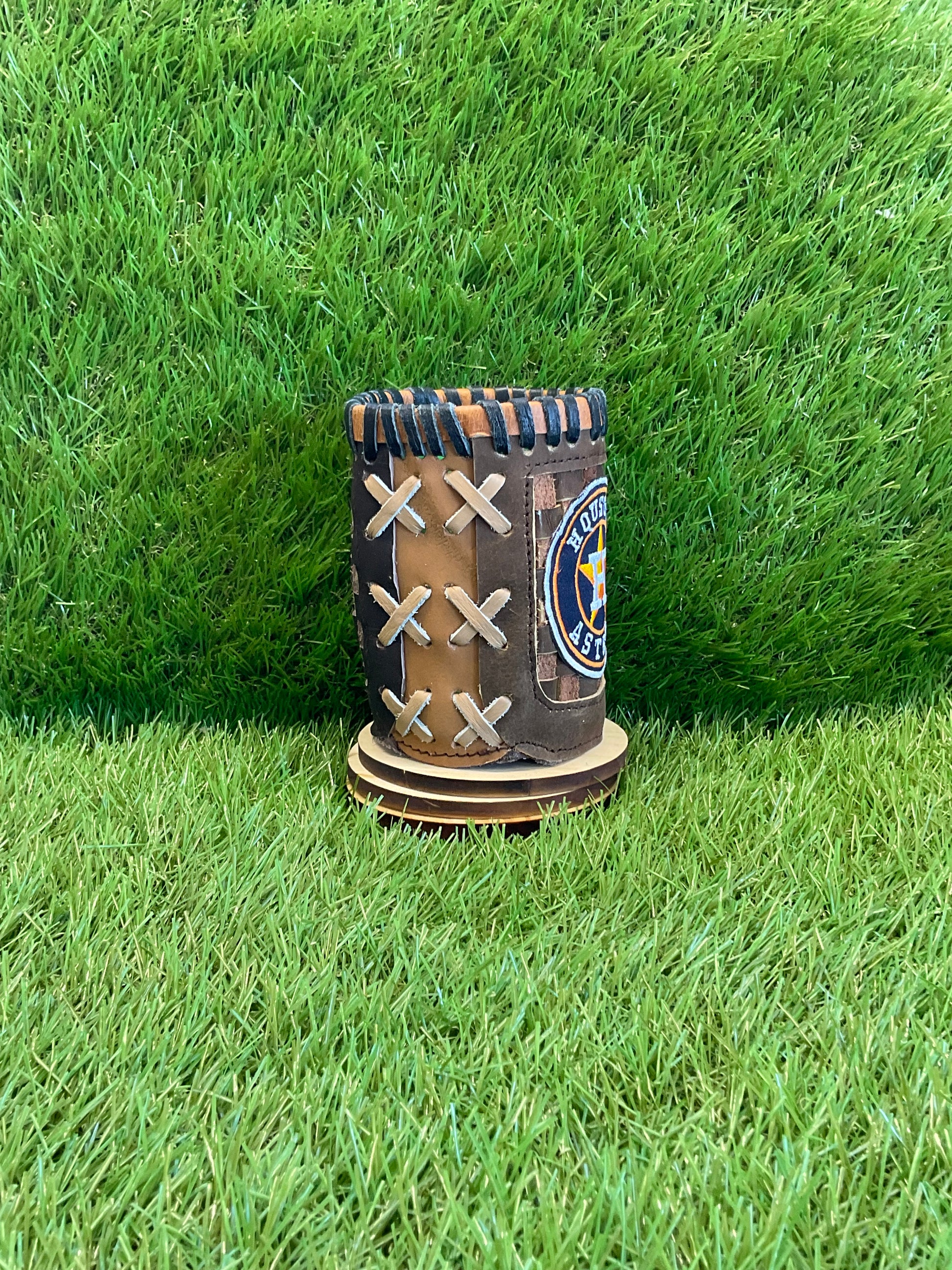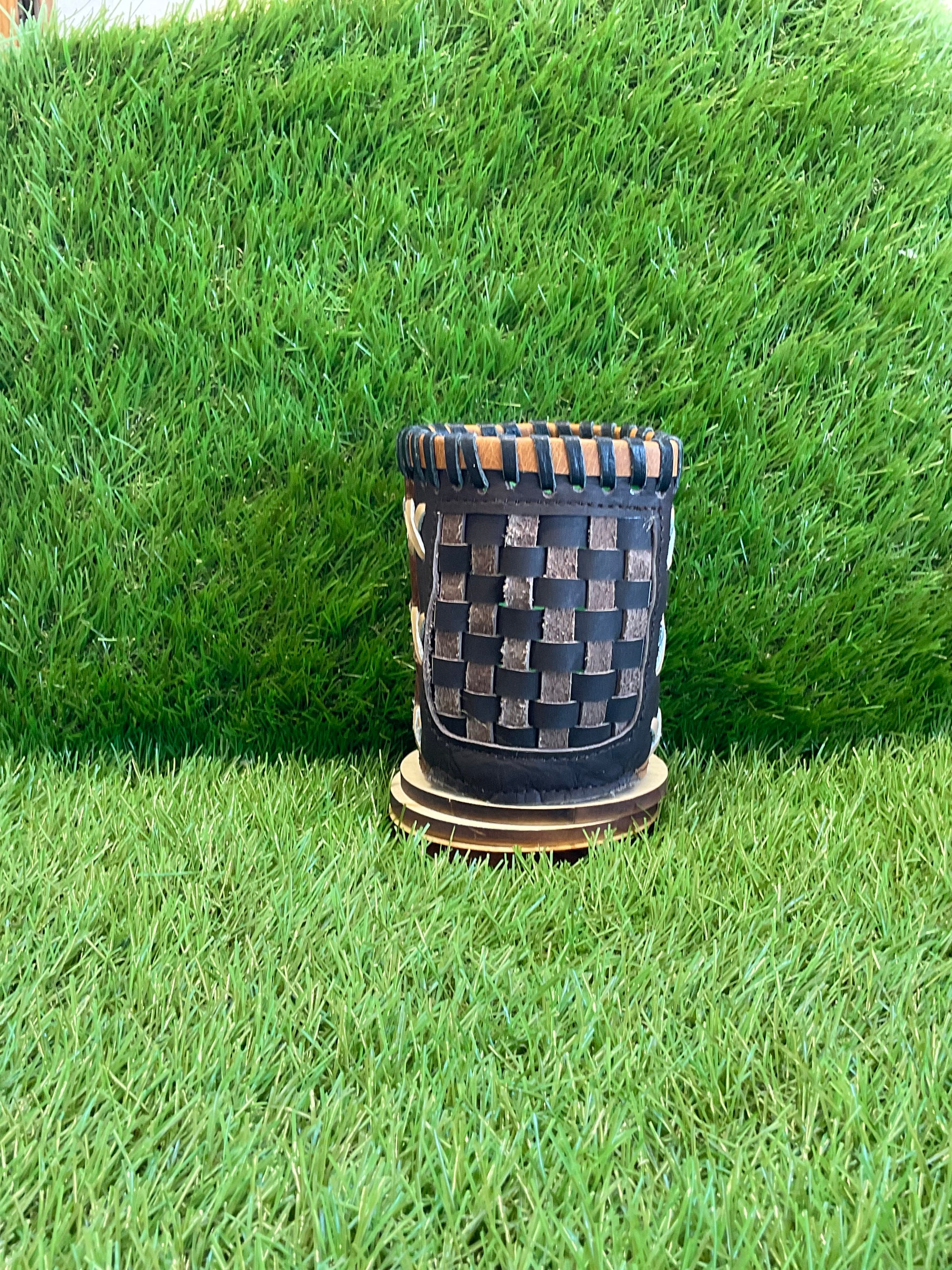 One of our Limited Edition style Cozies. These cozies are our latest design cozie that is 100% leather including the bottom. we make the original baseball pocket cozie and have a design that will last a very long time. We offer the cozies in many different color combinations. We offer cozies plain and in Limited Editions.