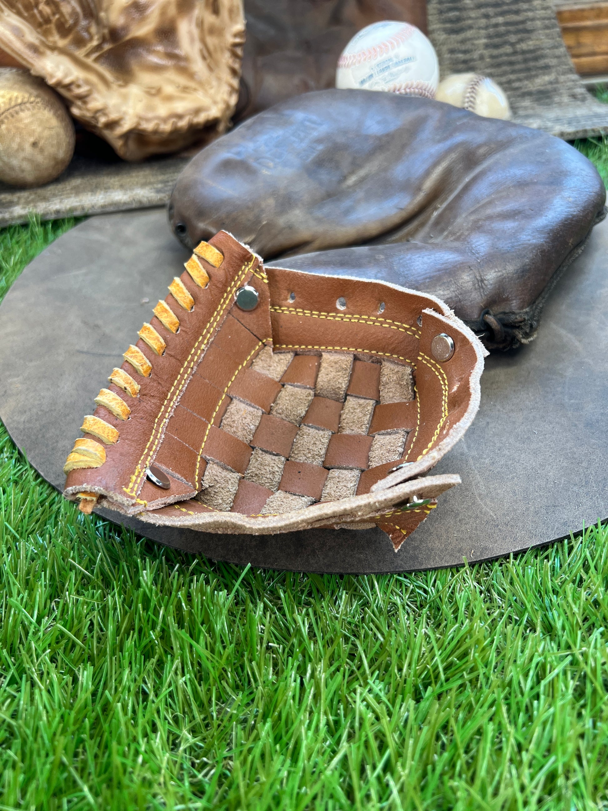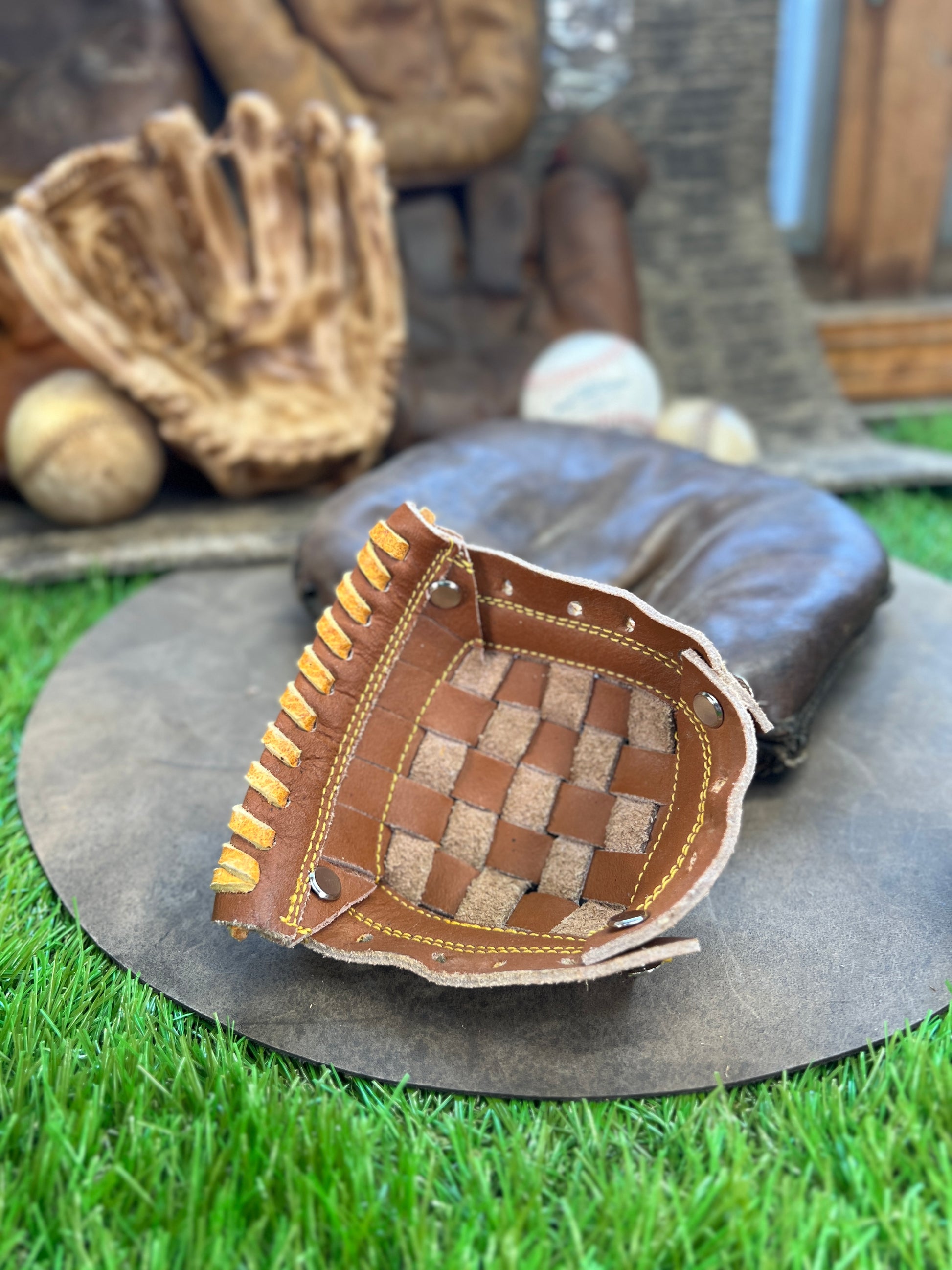 This is a valet made from authentic and vintage baseball glove pockets. This item is the prefect gift item for the office, home, or anyplace you might need it. It can hold from keys, to change, all the way to rings and watches.