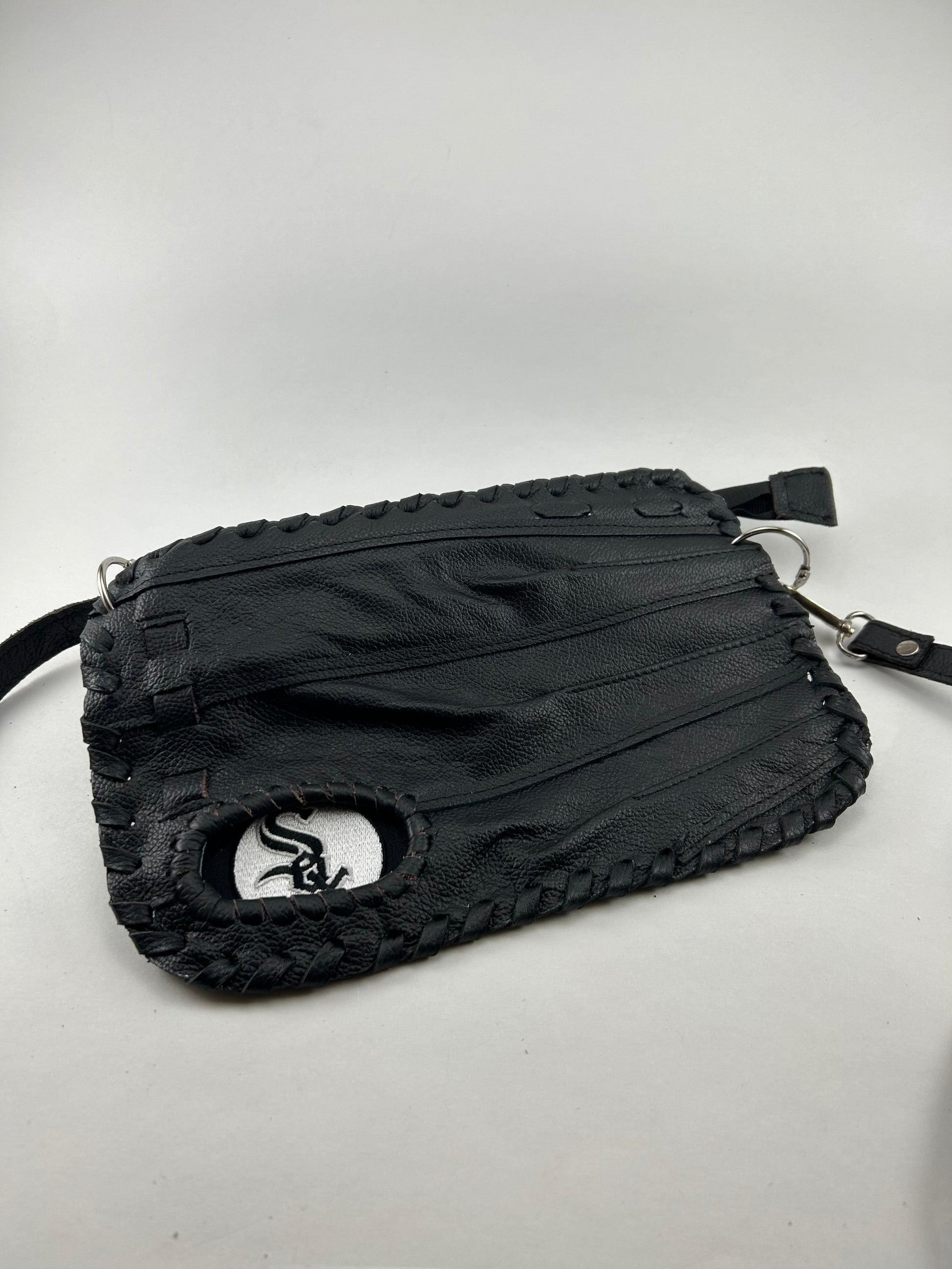 New for 2025! Our traditional brown finger glove purse has just gotten a stylish upgrade. And why not?! After brown, black is the next most popular color for baseball mitts! These new, sleek purses have a window that make most team logos really pop! They are the same size as our regular finger glove purses at 11in x 7in and a 46in cross-body strap.