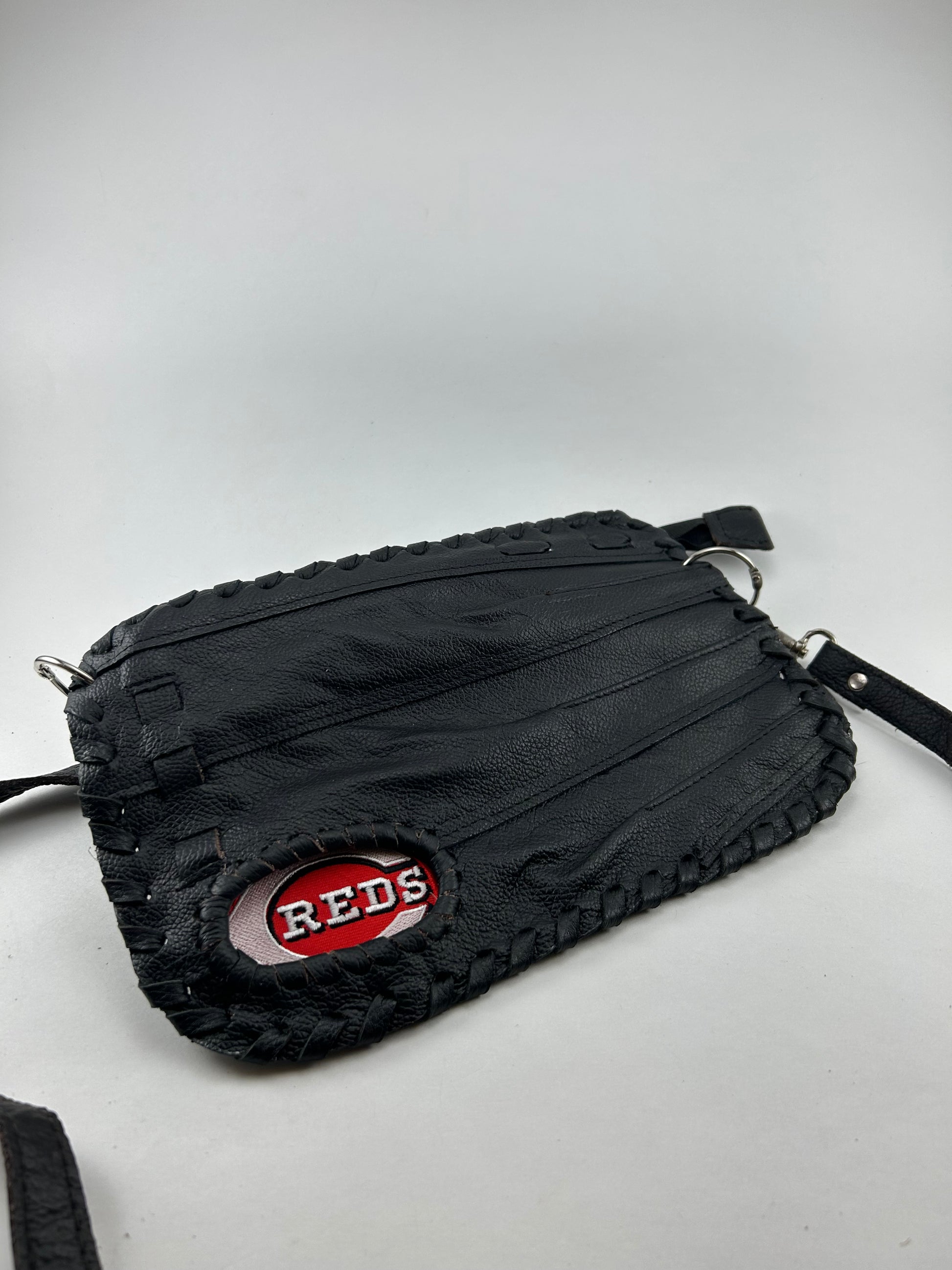 New for 2025! Our traditional brown finger glove purse has just gotten a stylish upgrade. And why not?! After brown, black is the next most popular color for baseball mitts! These new, sleek purses have a window that make most team logos really pop! They are the same size as our regular finger glove purses at 11in x 7in and a 46in cross-body strap.