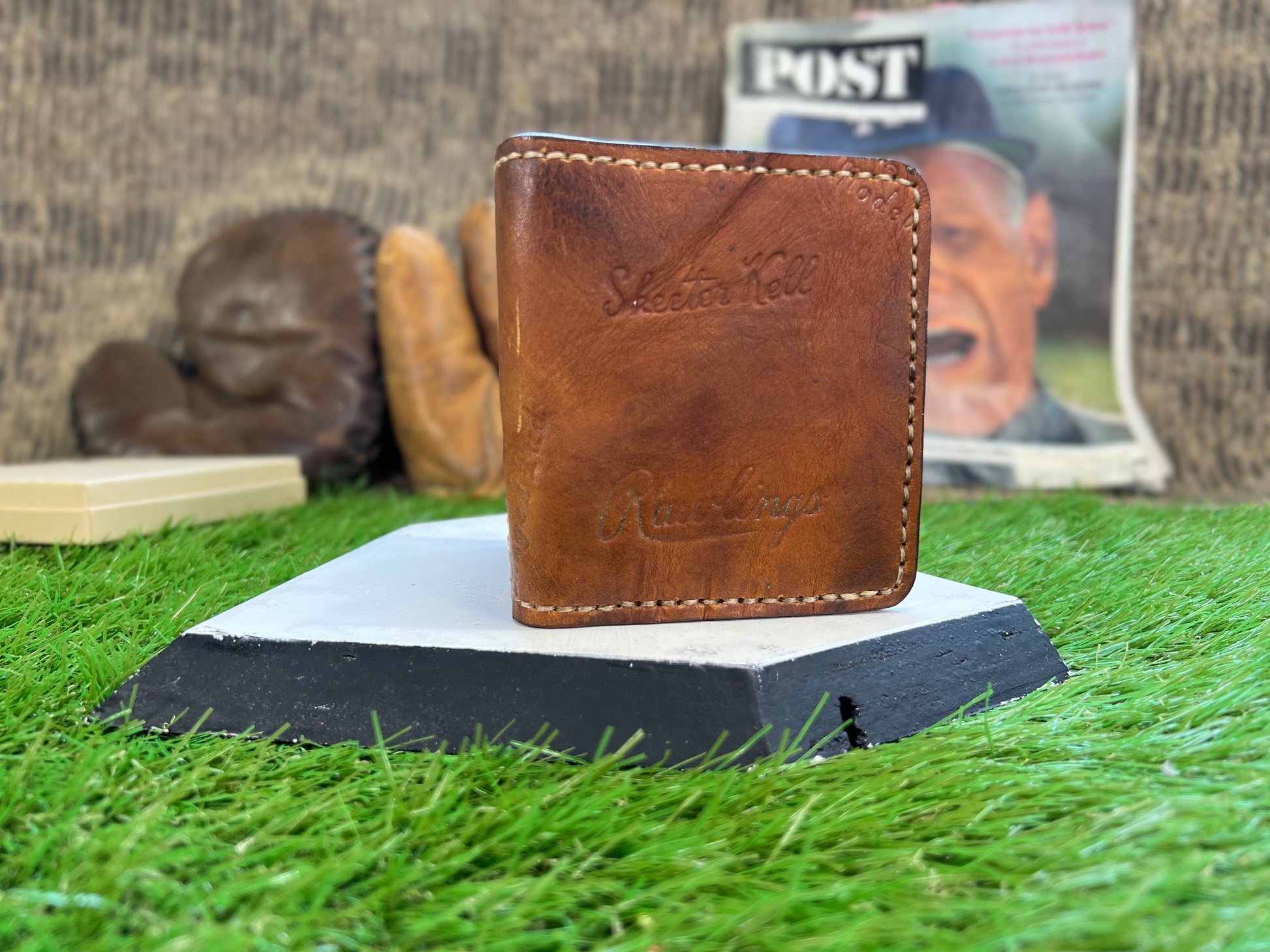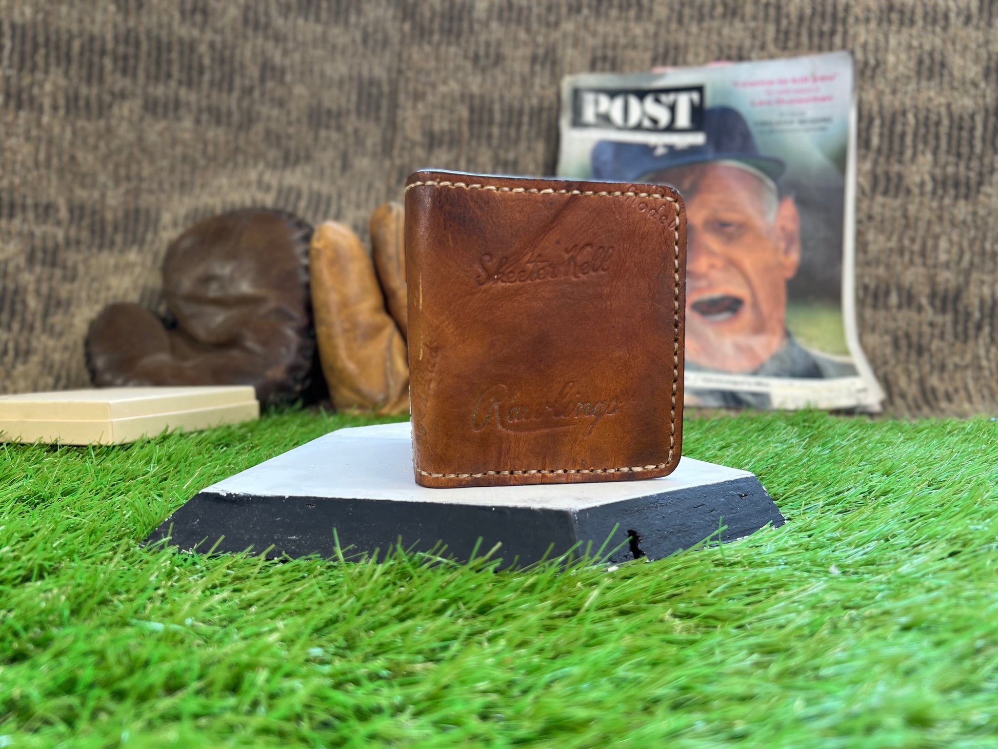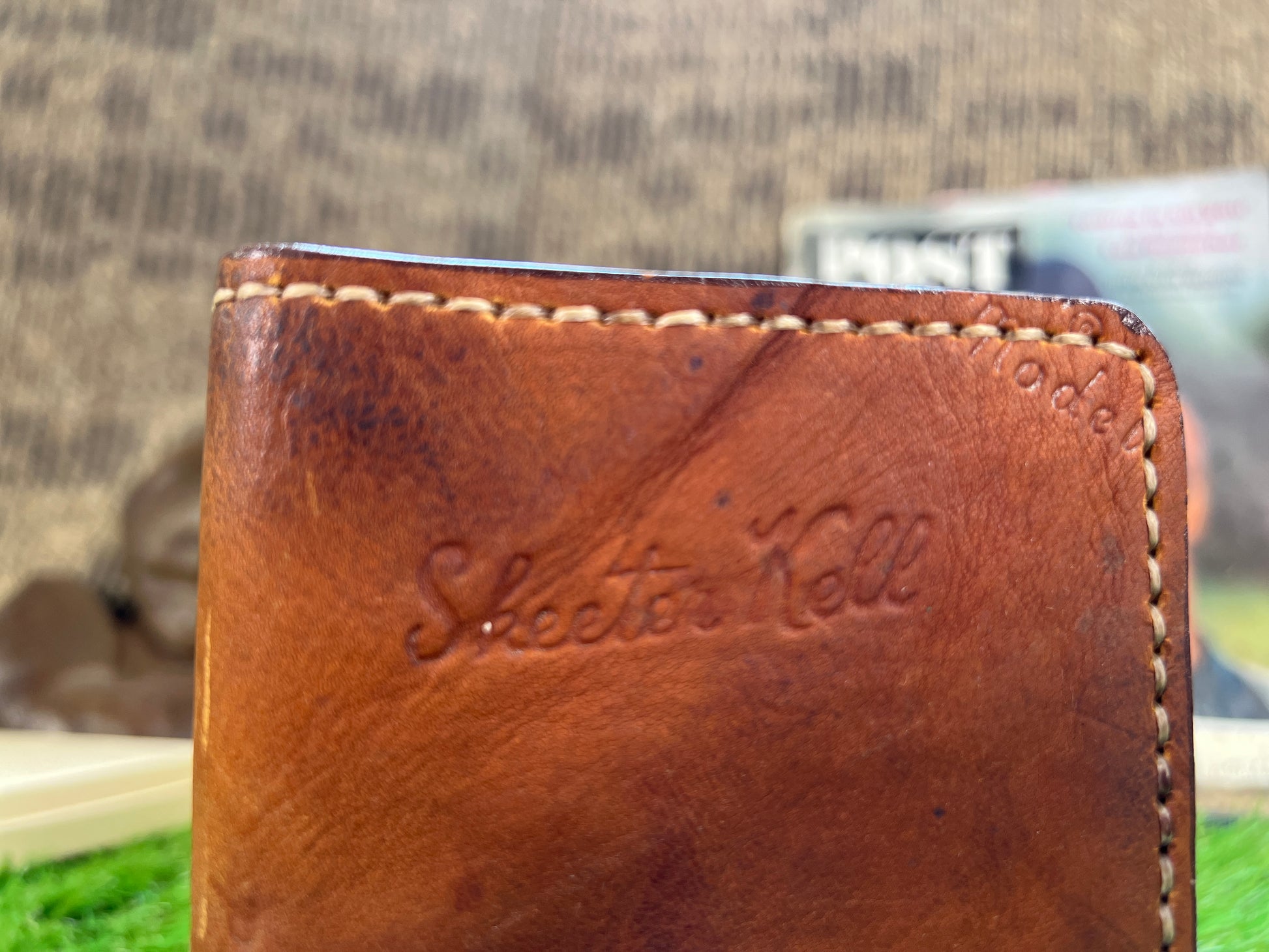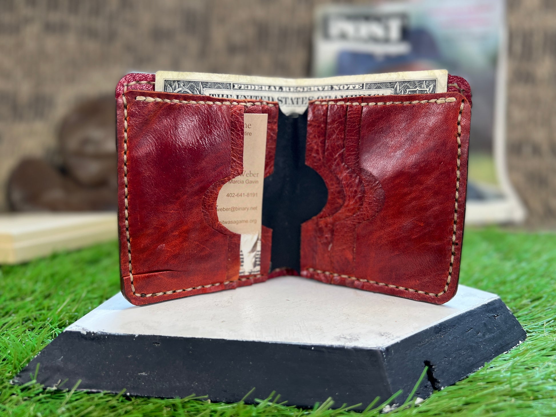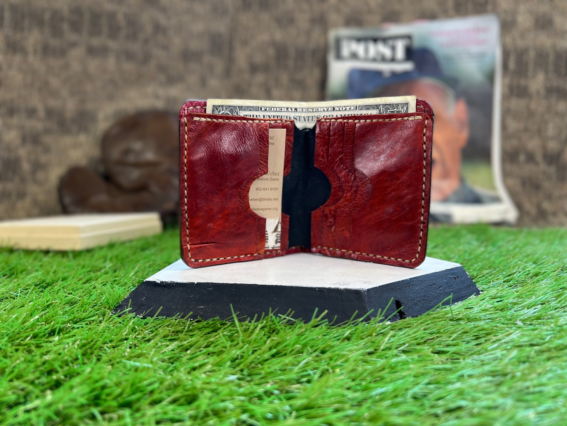 This wallet has eight side load card pockets and measures 4.25" by 3.75"