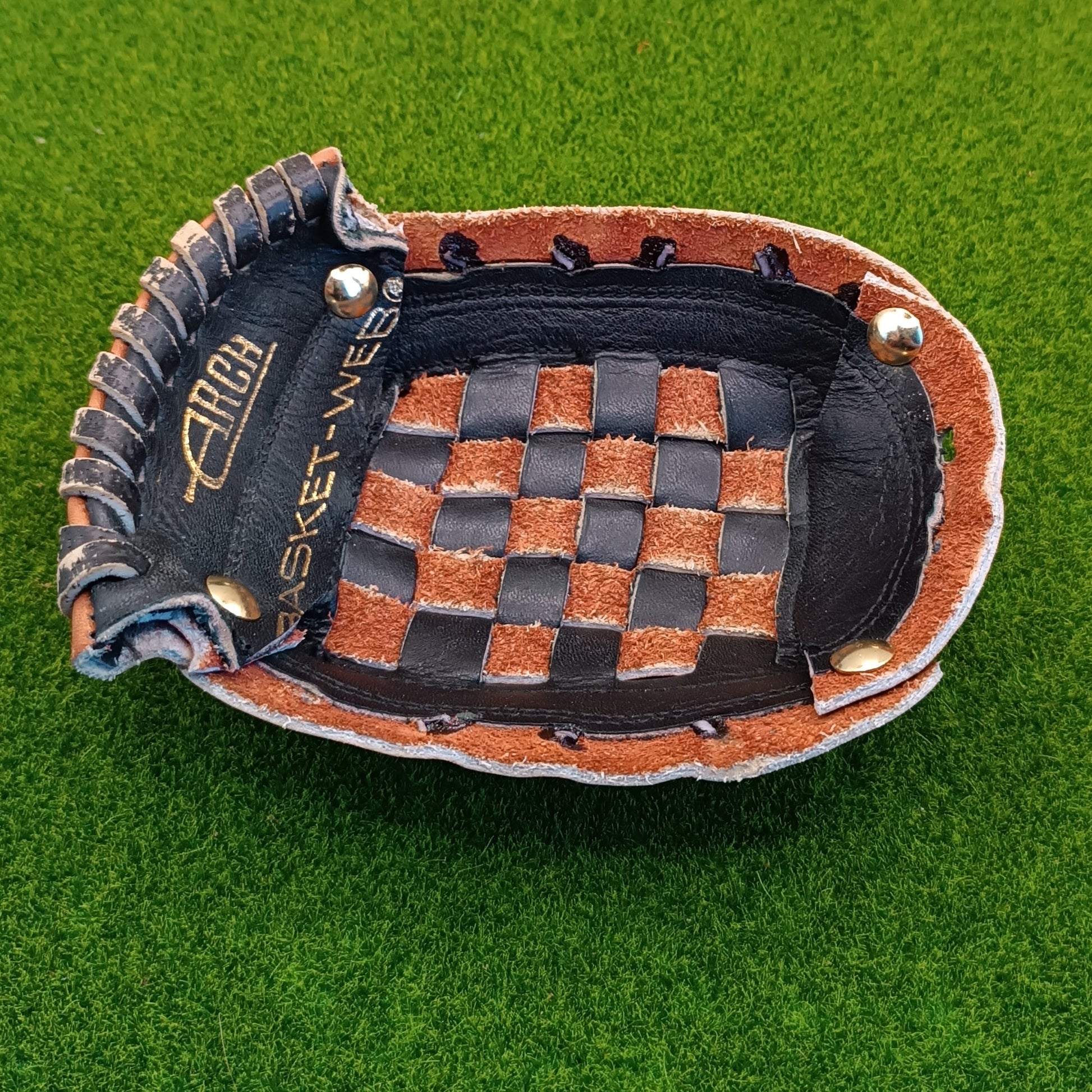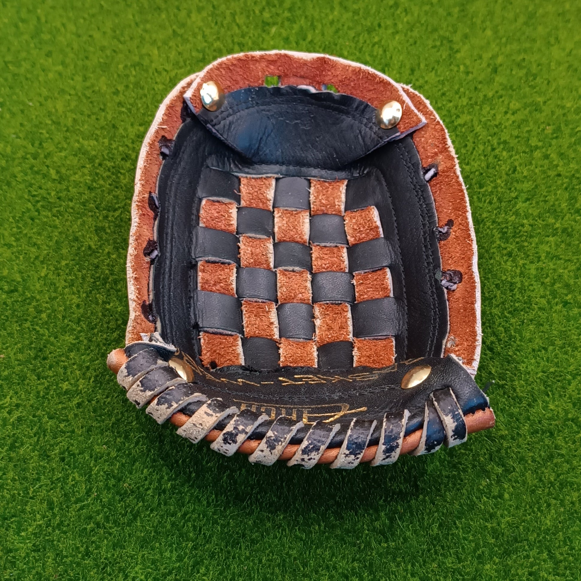 This is a valet tray made from a real vintage baseball glove pocket. This item is a prefect and unique gift for the office, home, or as display piece that could function as a conversation starter. The size and shape is ideal for holding anything from keys, to change, all the way to jewelery, watches. A great piece for any baseball that is looking to organize with vintage baseball flair!