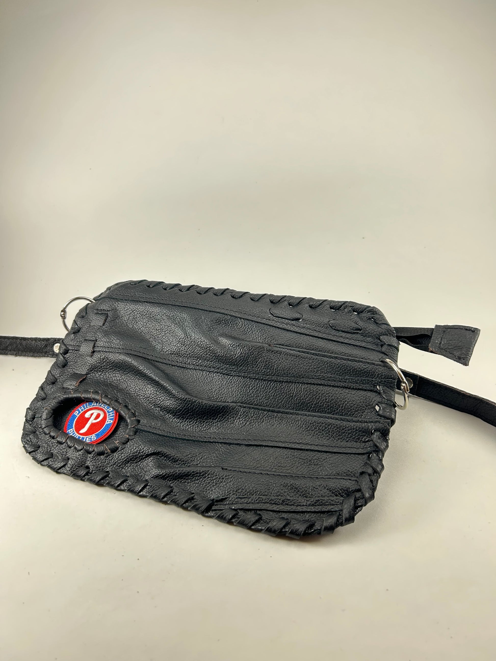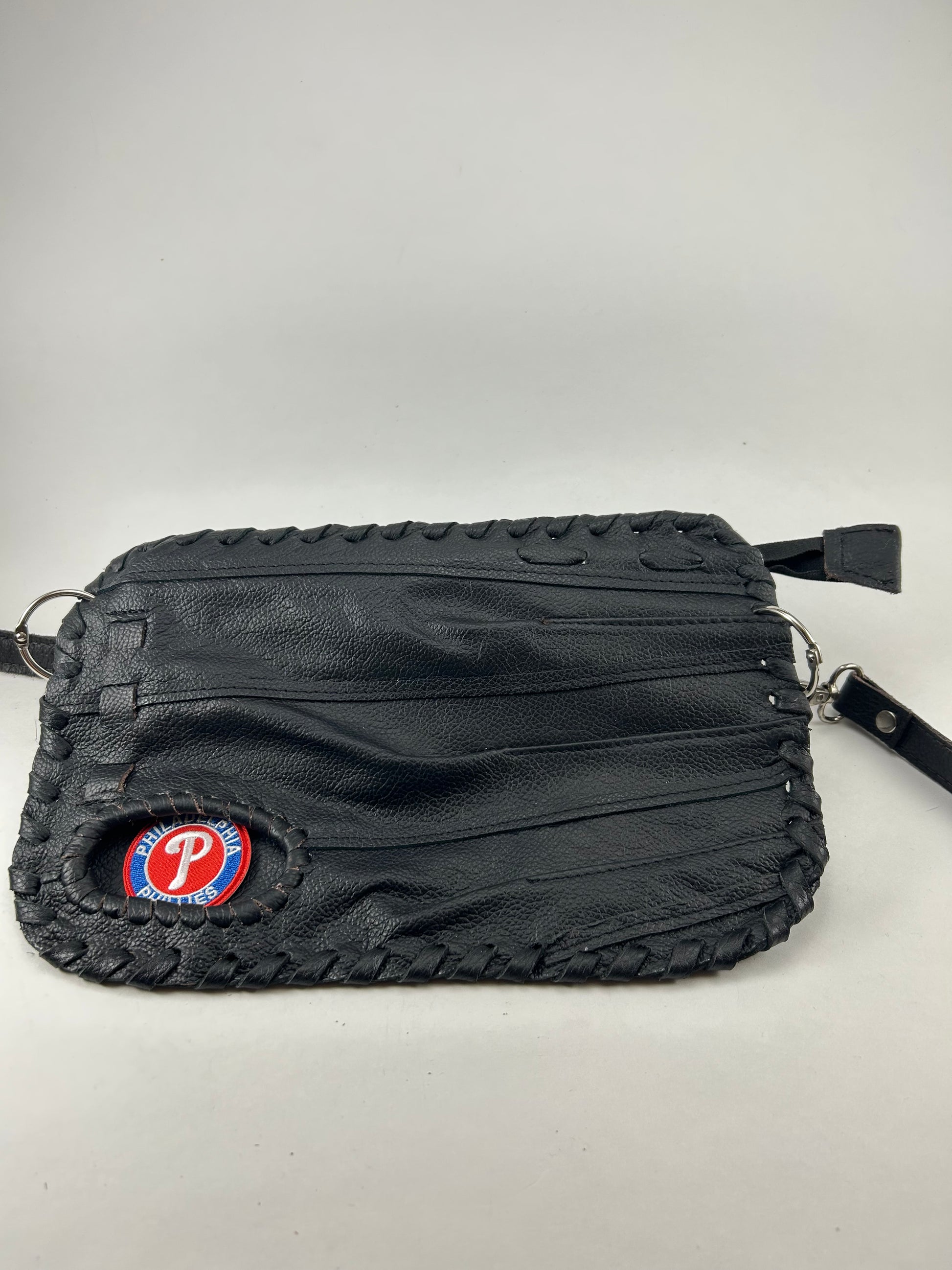 New for 2025! Our traditional brown finger glove purse has just gotten a stylish upgrade. And why not?! After brown, black is the next most popular color for baseball mitts! These new, sleek purses have a window that make most team logos really pop! They are the same size as our regular finger glove purses at 11in x 7in and a 46in cross-body strap.