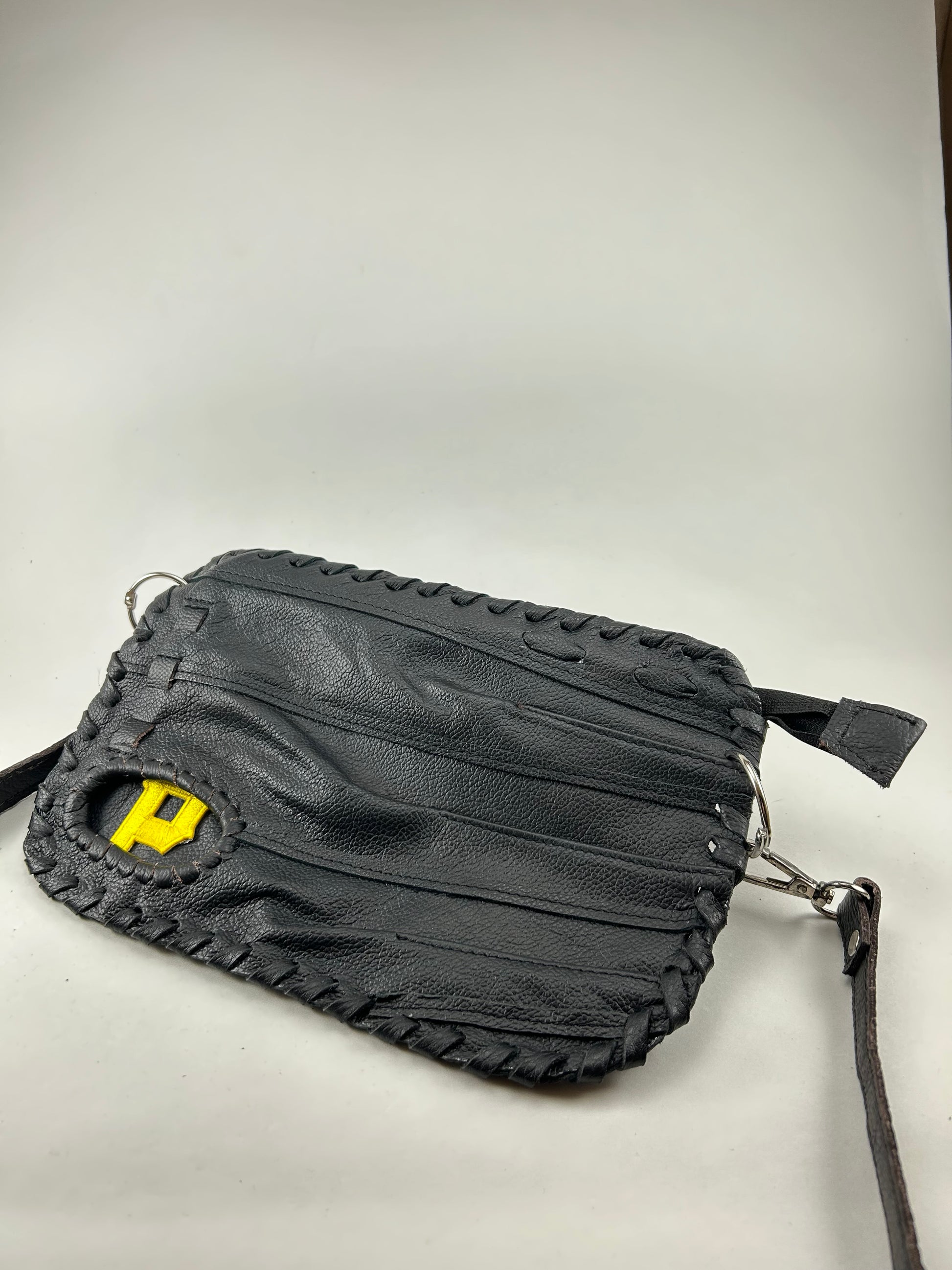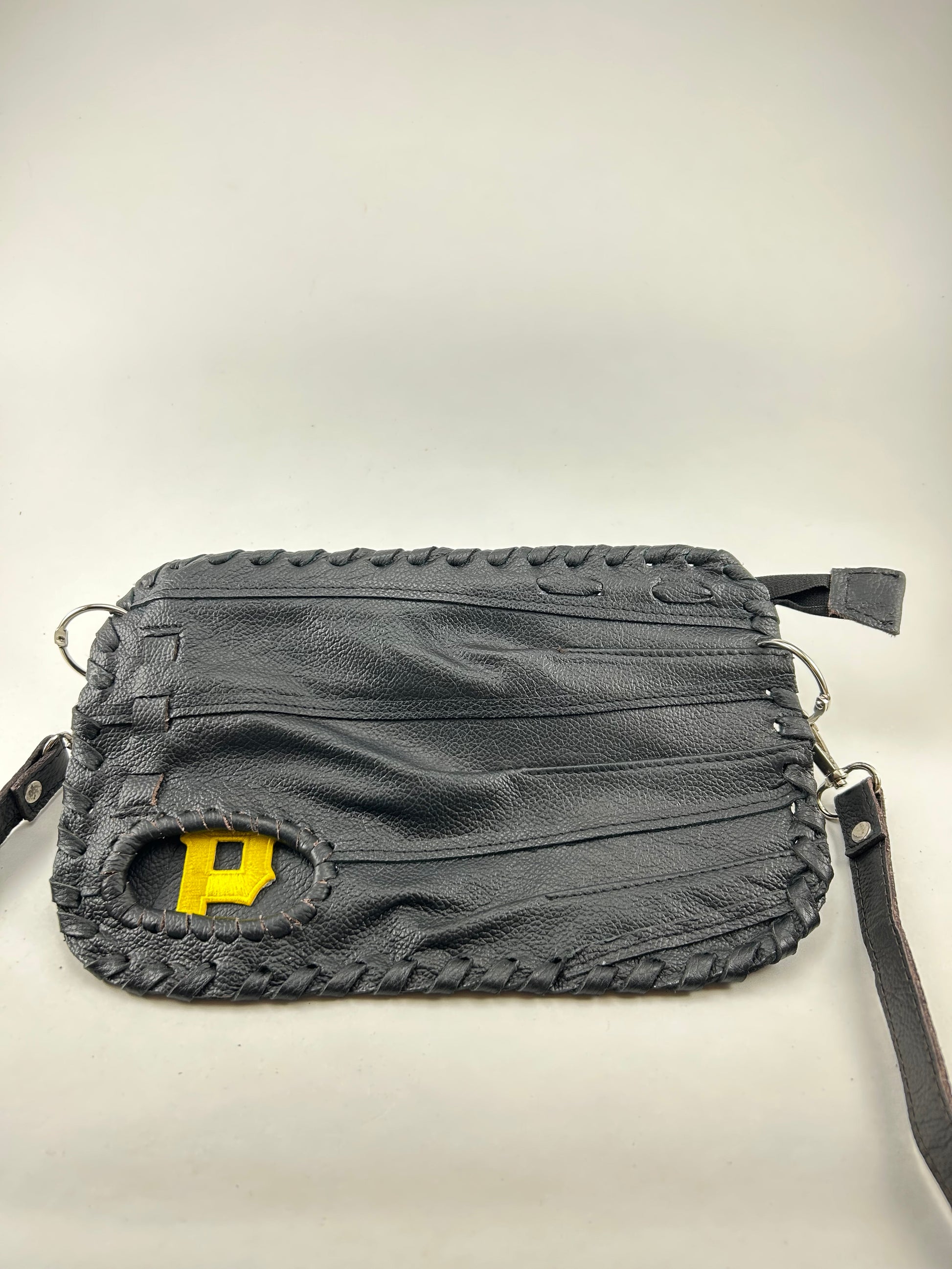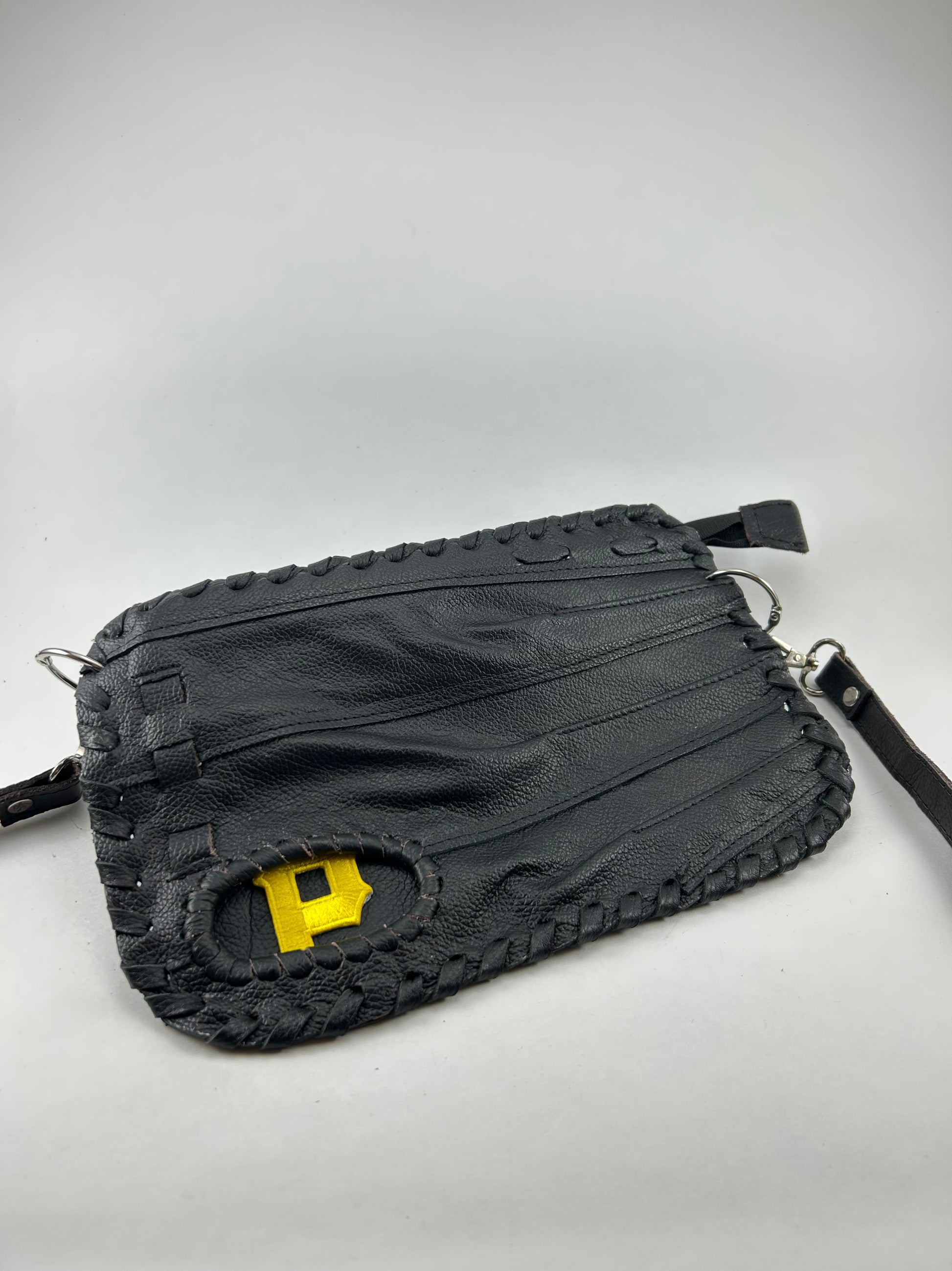 New for 2025! Our traditional brown finger glove purse has just gotten a stylish upgrade. And why not?! After brown, black is the next most popular color for baseball mitts! These new, sleek purses have a window that make most team logos really pop! They are the same size as our regular finger glove purses at 11in x 7in and a 46in cross-body strap.