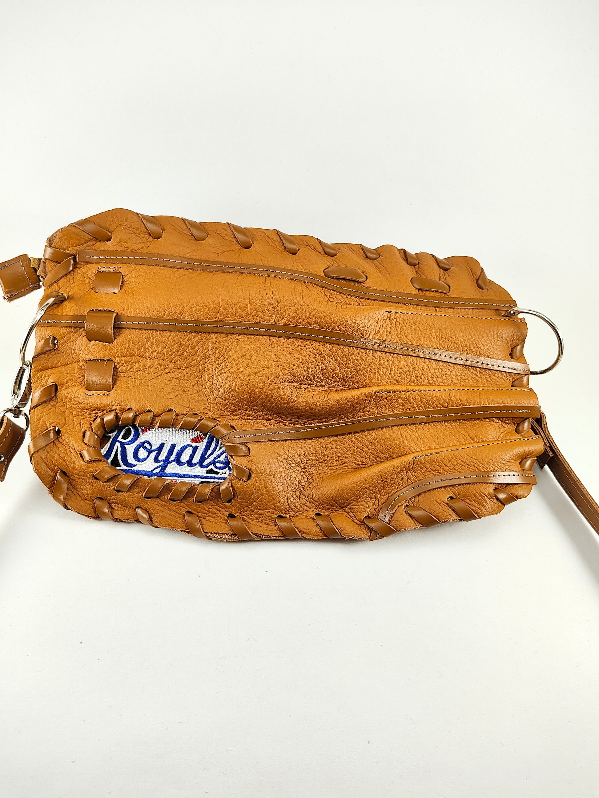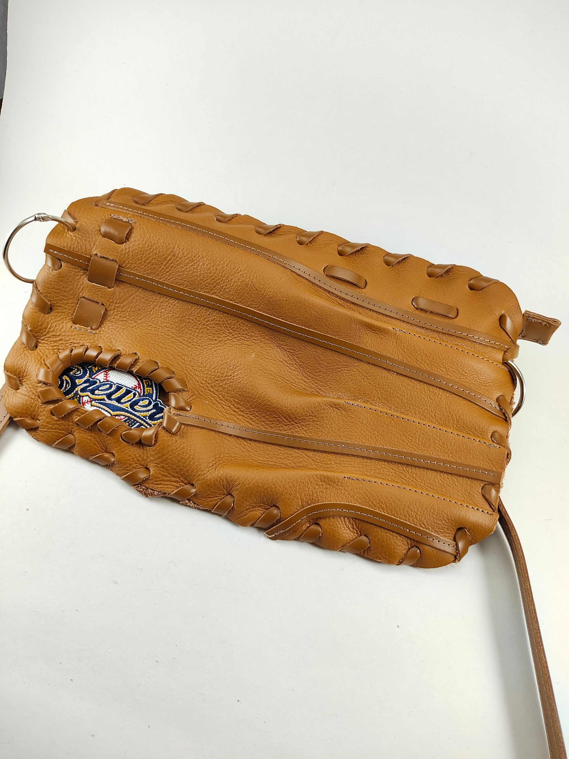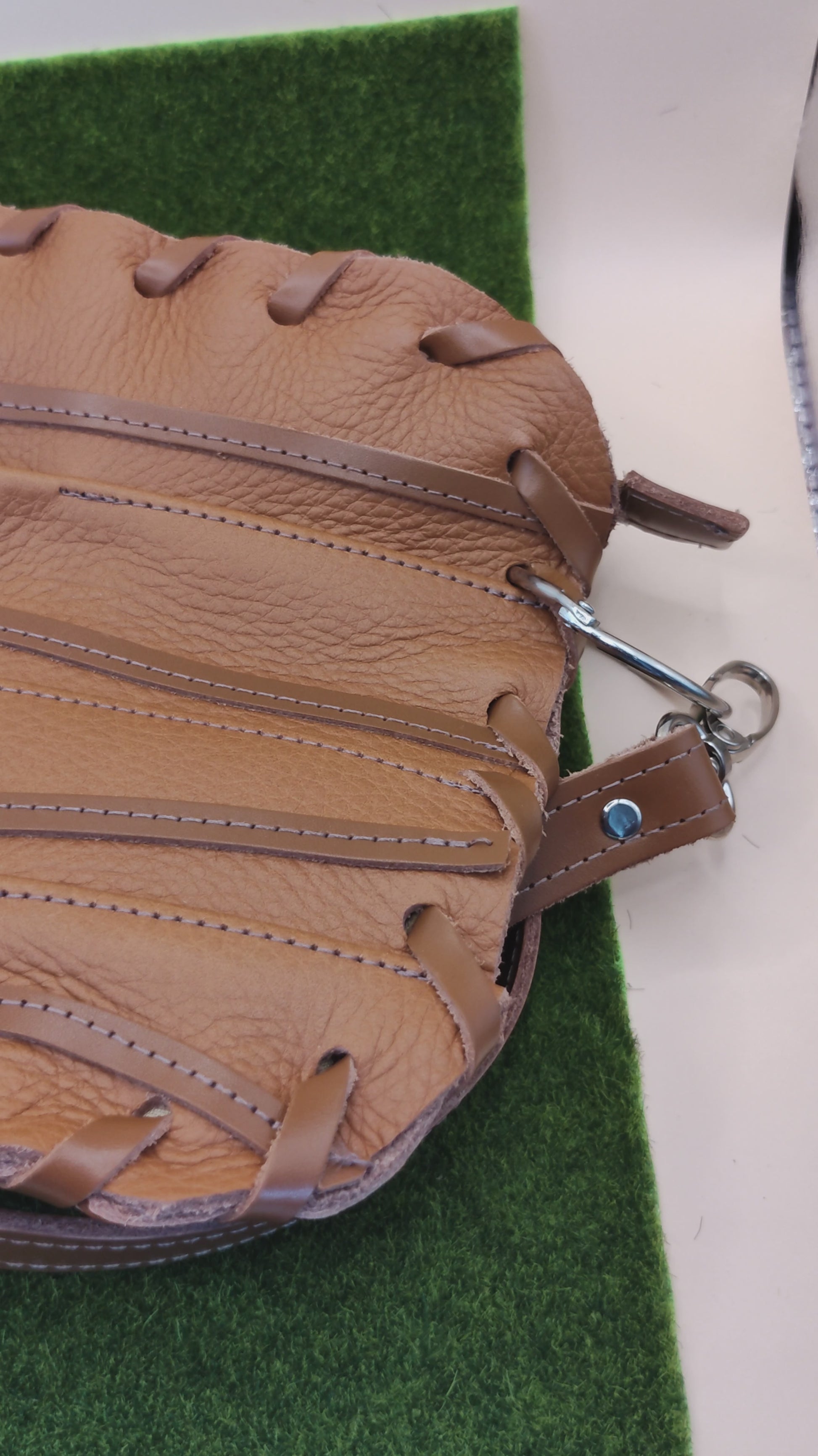 They are finally finished. Many customers have been awaiting these look alike glove finger purses. While not actually glove backs these purses are available at a much lower cost than the real glove backs. These glove purses are customizable as well. Look at the team example pictures below. Other team logos are available on a custom basis. 100% real full grain leather with a regular fabric purse liner. The all leather strap can be used over the shoulder or crossbody. They measure 7" by 11" for that just right carry size.