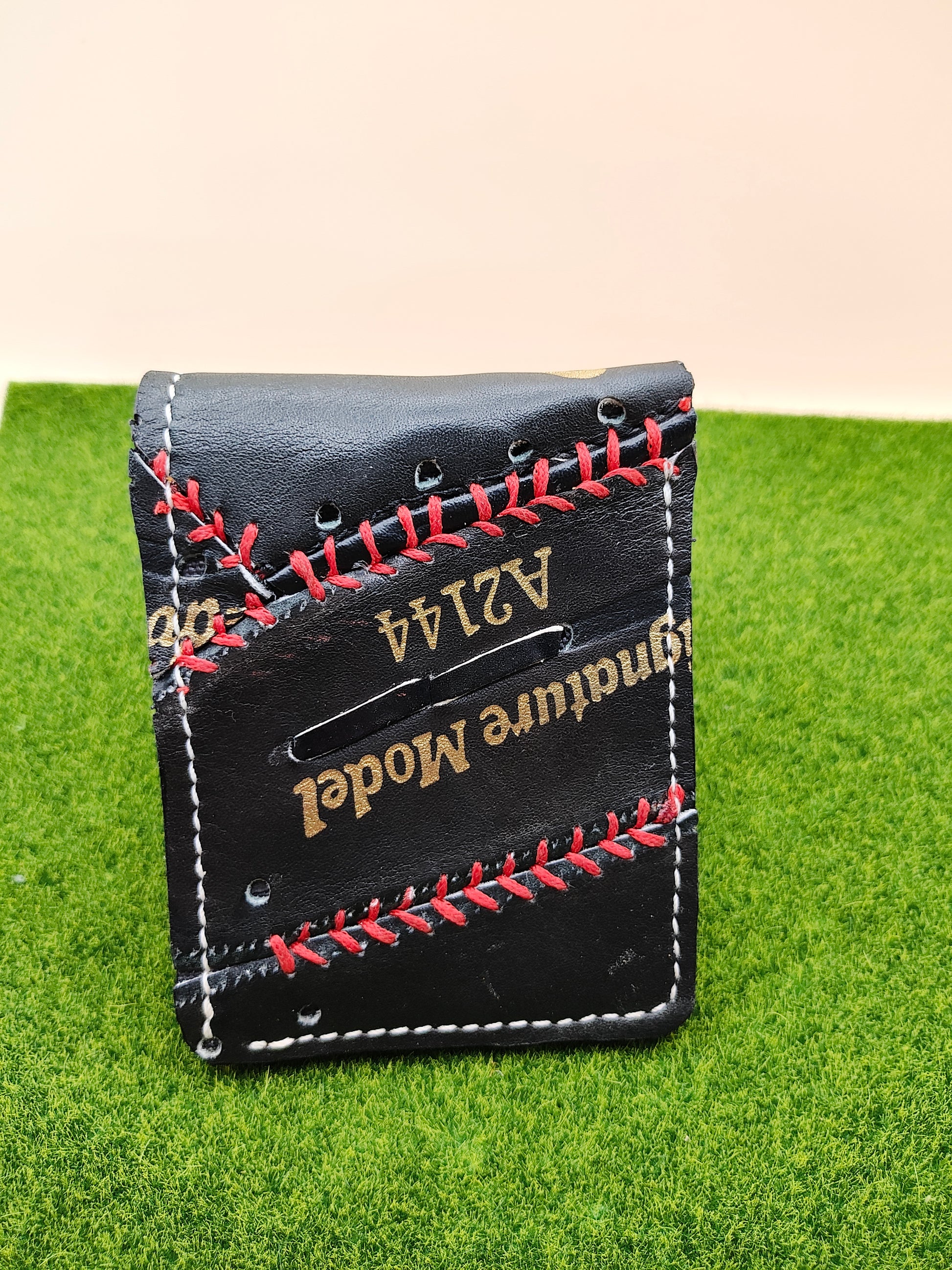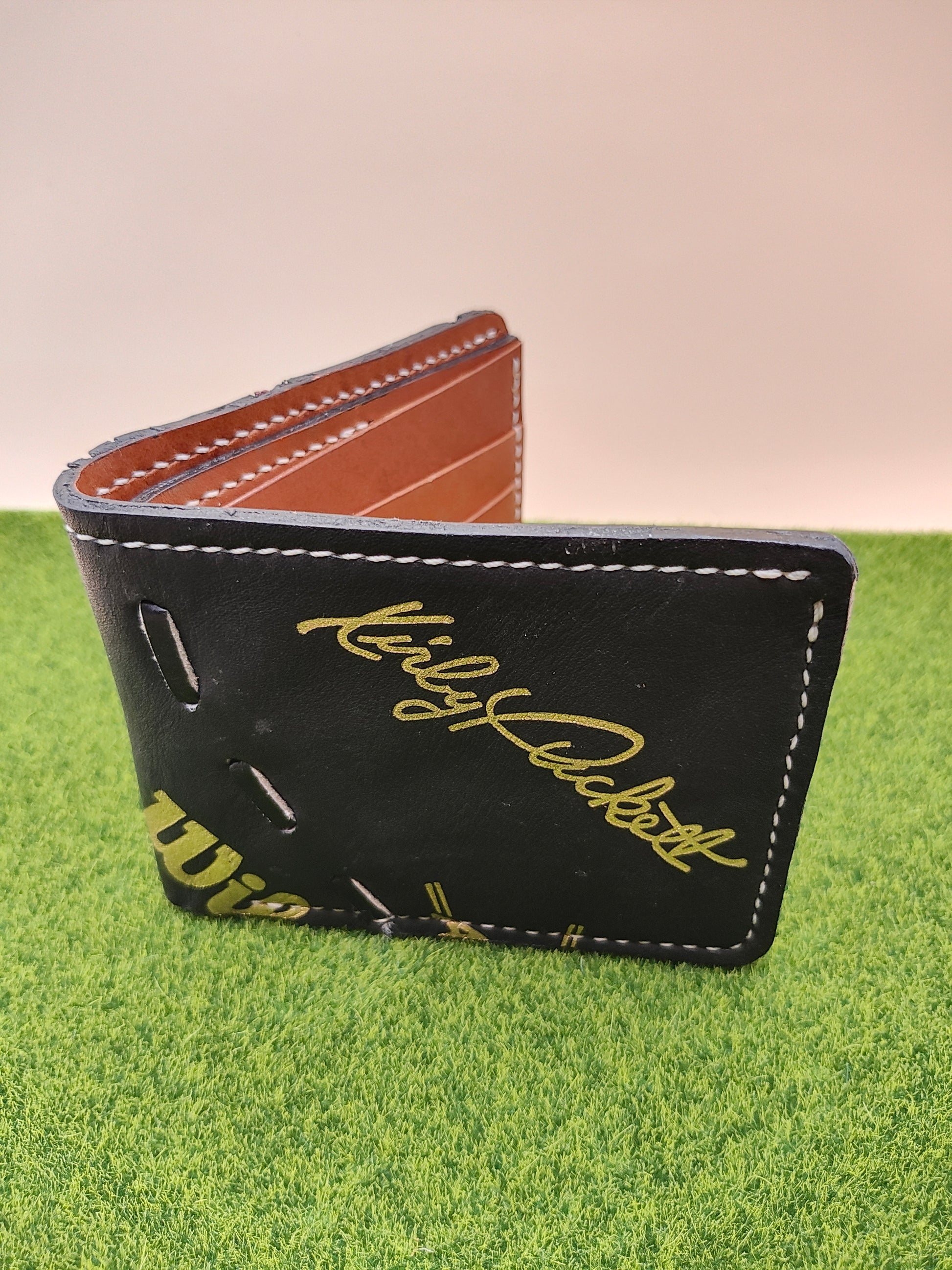 The day I received this Kirby Puckett glove I knew that it would look amazing as a wallet. After taking it apart I had the artistic joy of reimagining it as something that someone could carry around in their day to day experience.