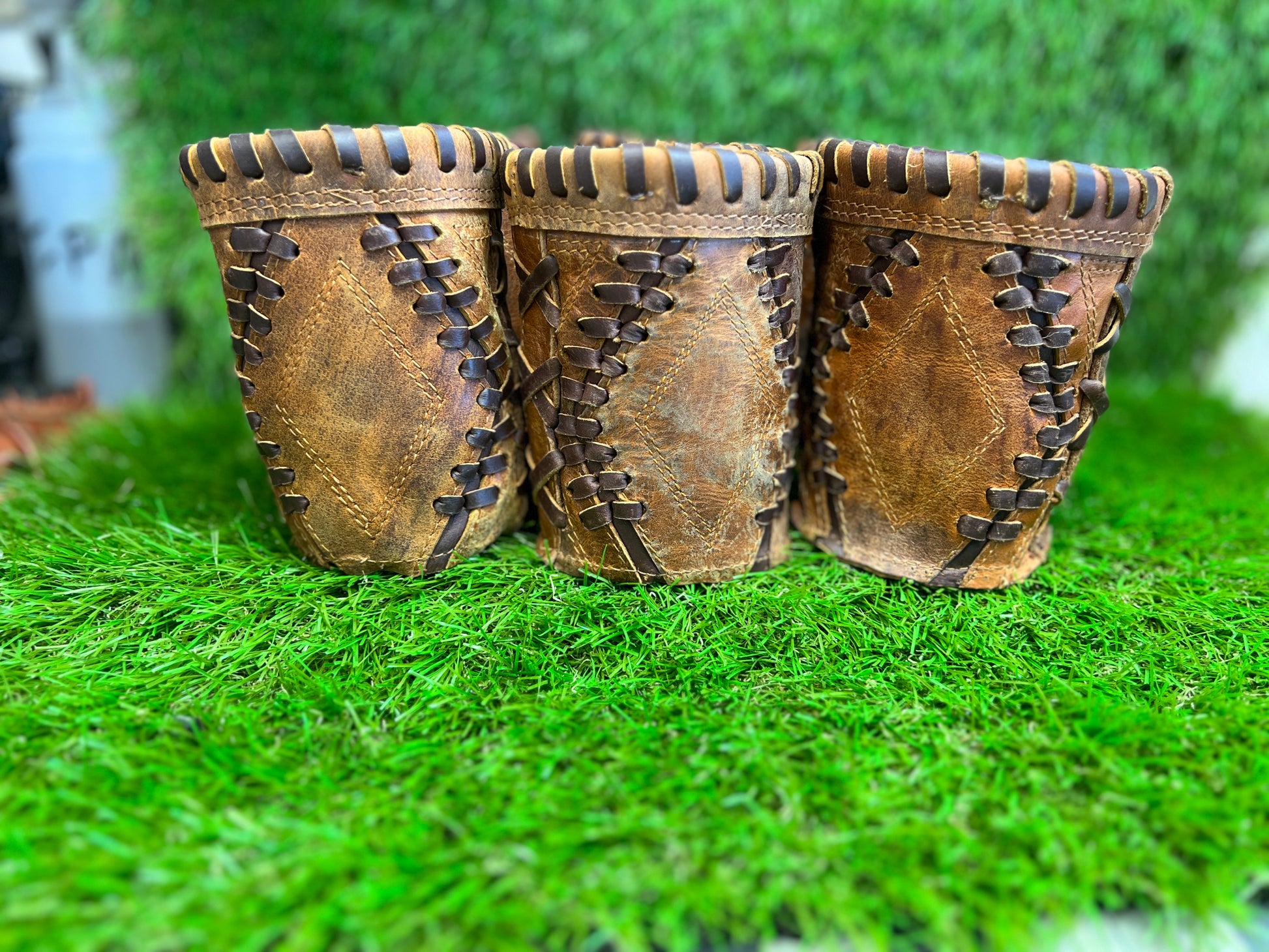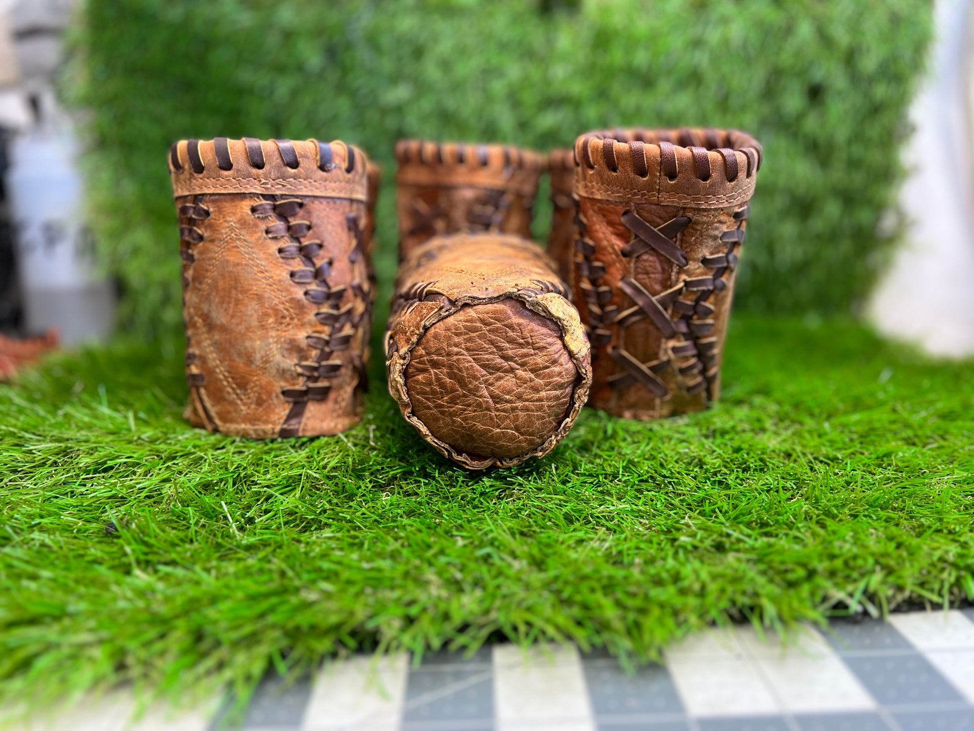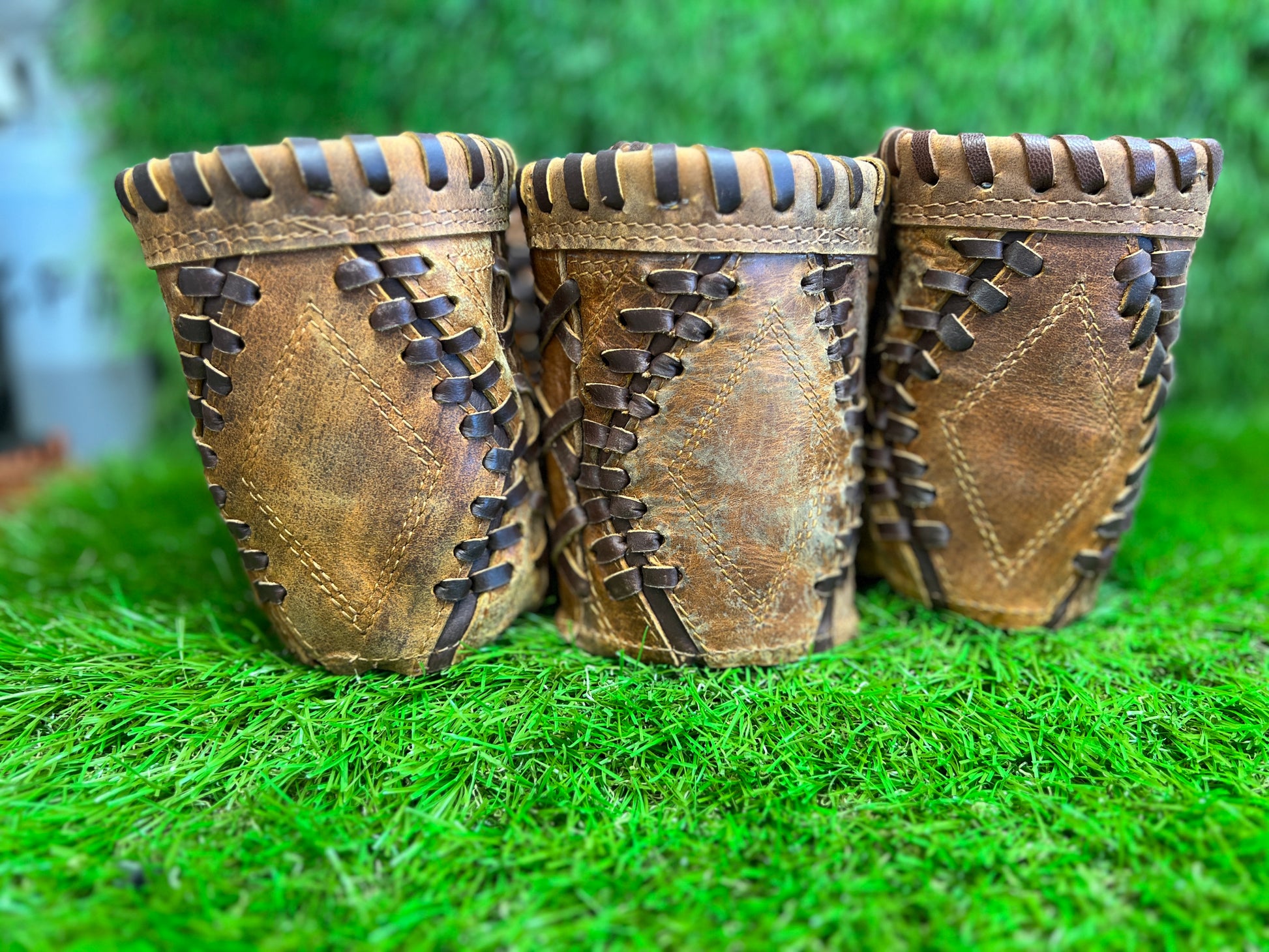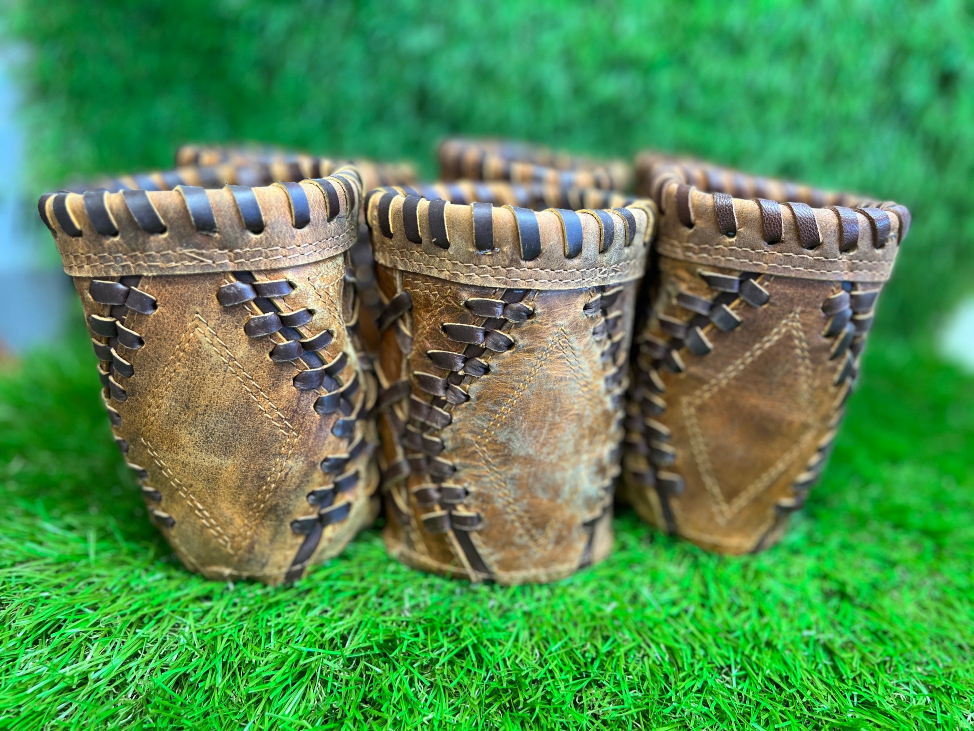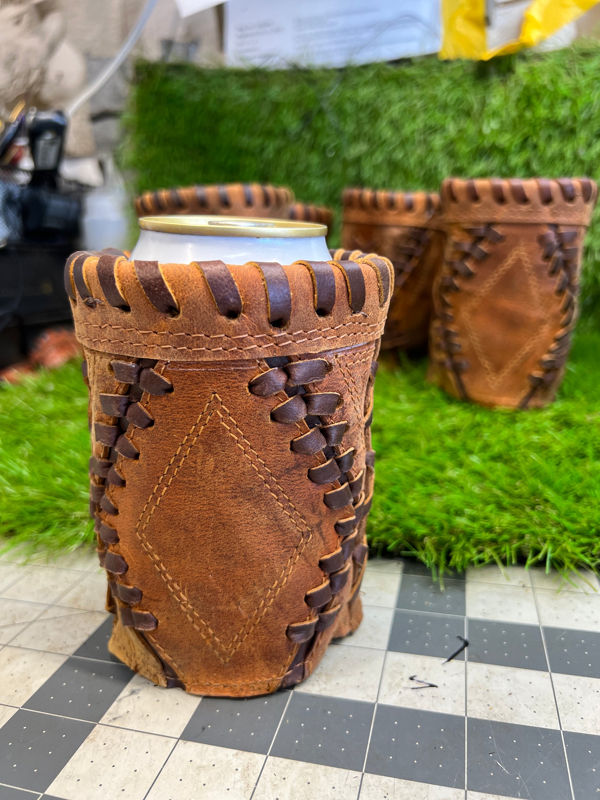 Get a 6 pack of coozies for one low price, One of our Limited Edition style Cozies. These cozies are our latest design cozie that is 100% leather including the bottom. We make the original baseball pocket coozie and have a design Get will last a very long time. We offer the cozies in many different color combinations. We offer coozies plain and in Limited Editions