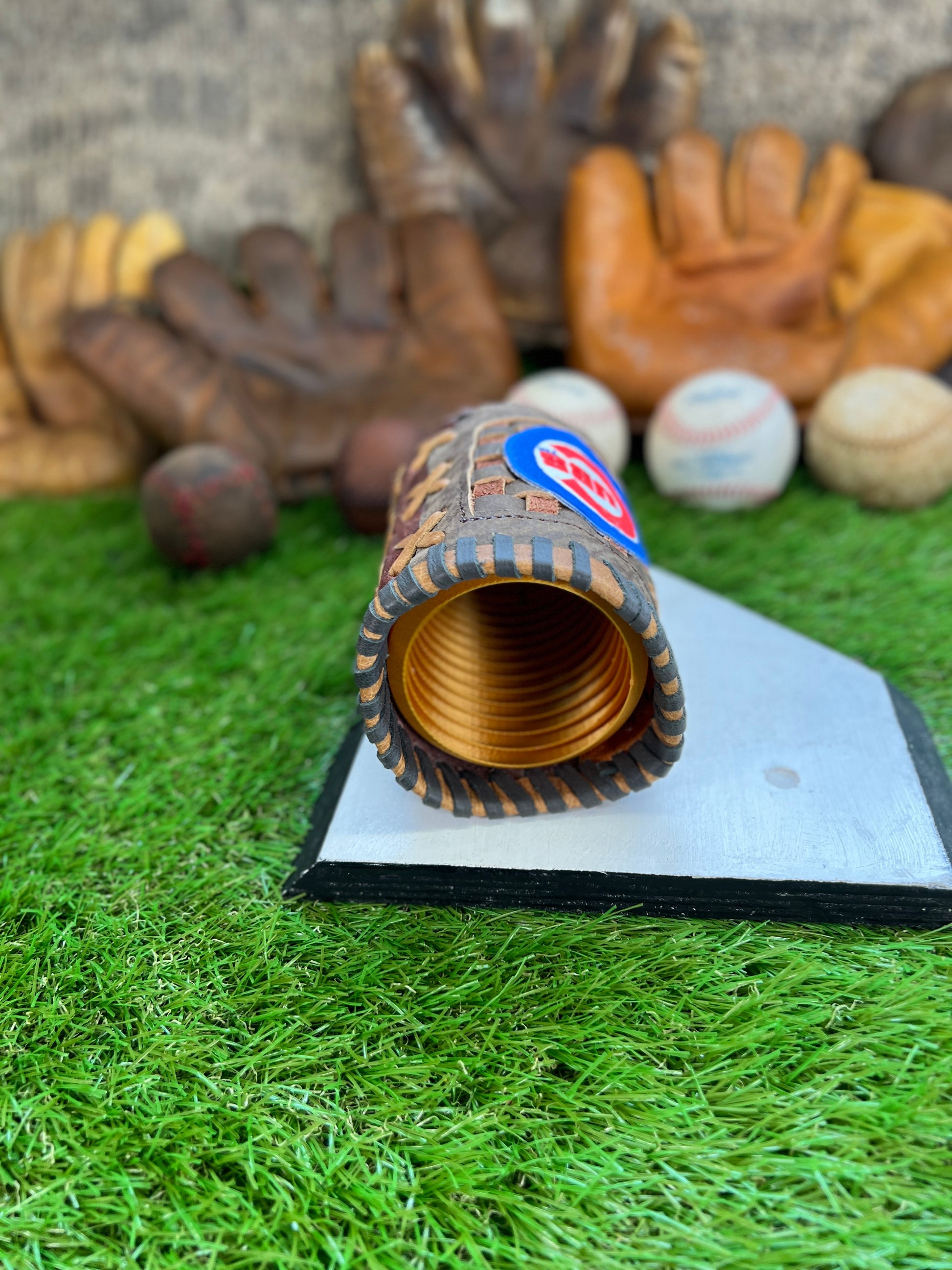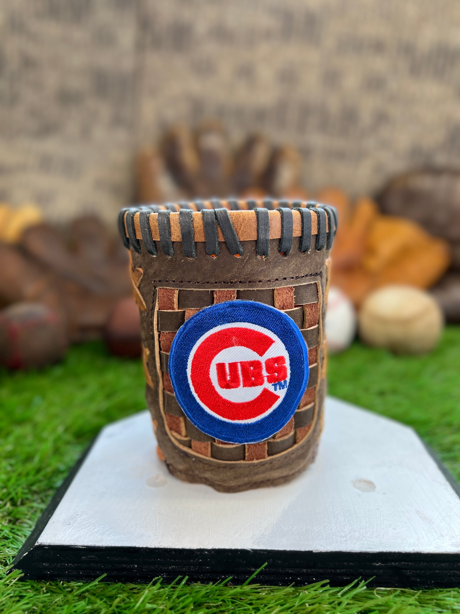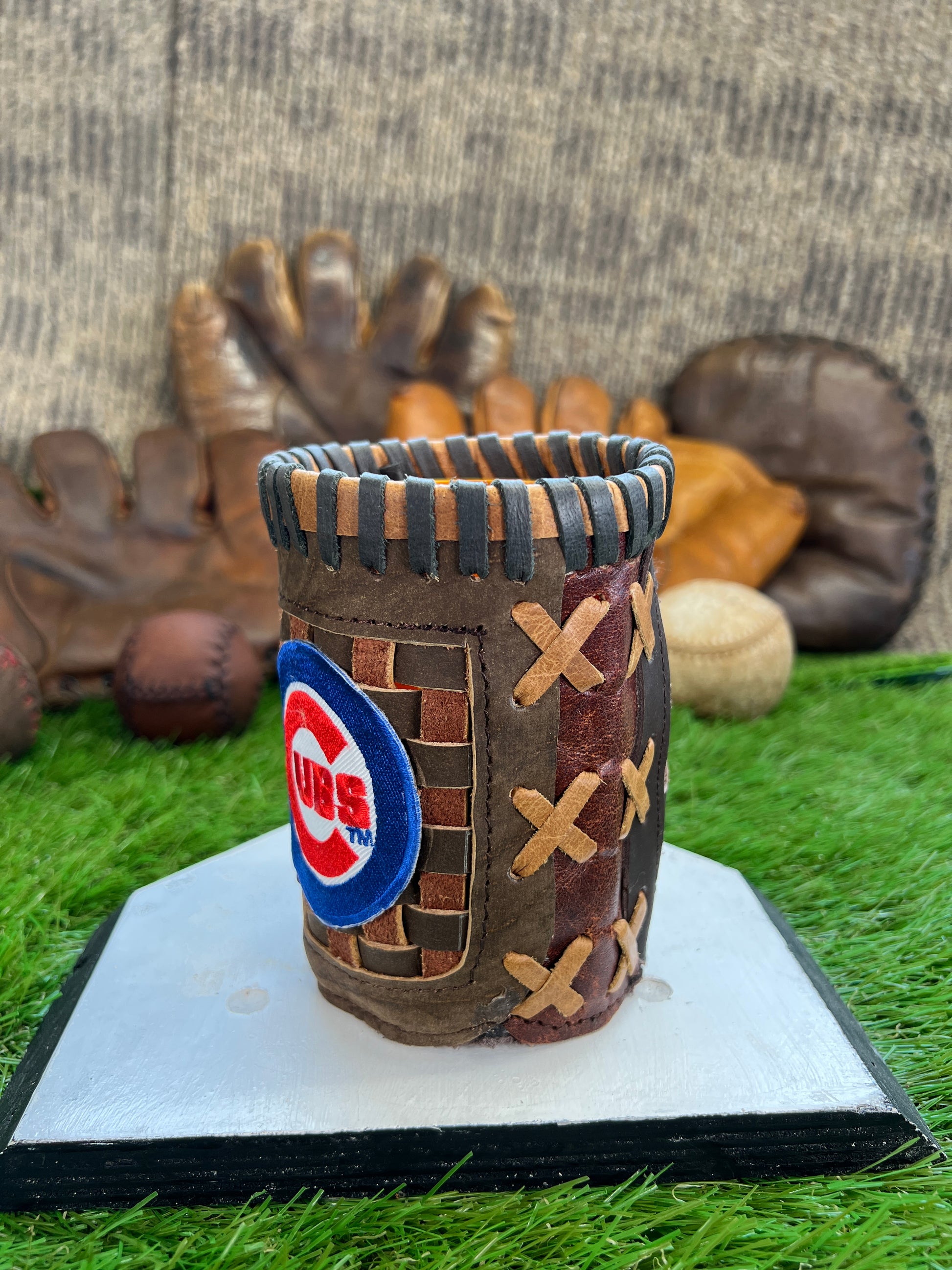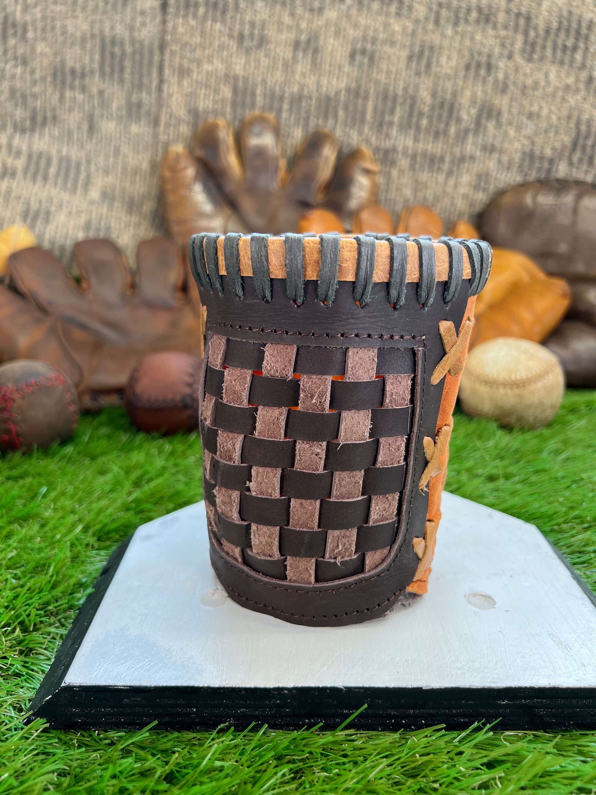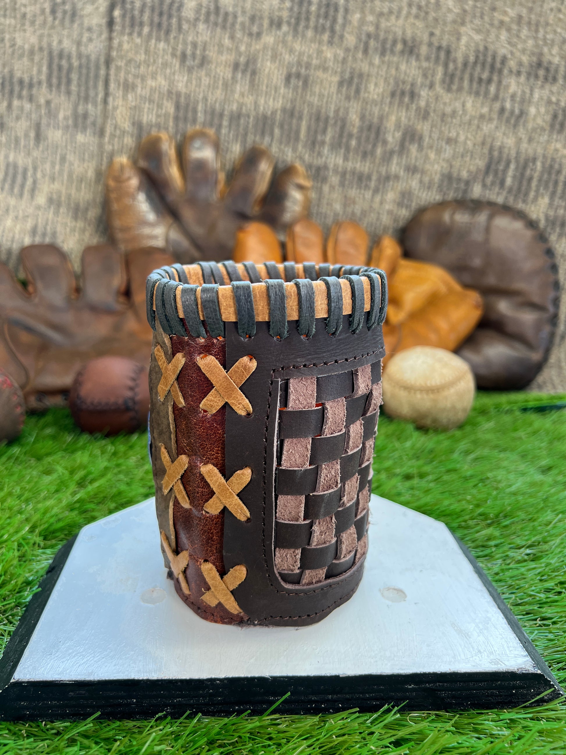 Our modern glove pocket coozie. These coozies are 100% leather including the bottom. we make the original baseball pocket coozie and have a design that will last a very long time. The coozie color may vary slightly so please let us know if there is a specific type you need. The coozie style  itself will remain consistent as displayed here. All of these coozies come with a thick foam liner to keep the leather safe from moisture and molding.