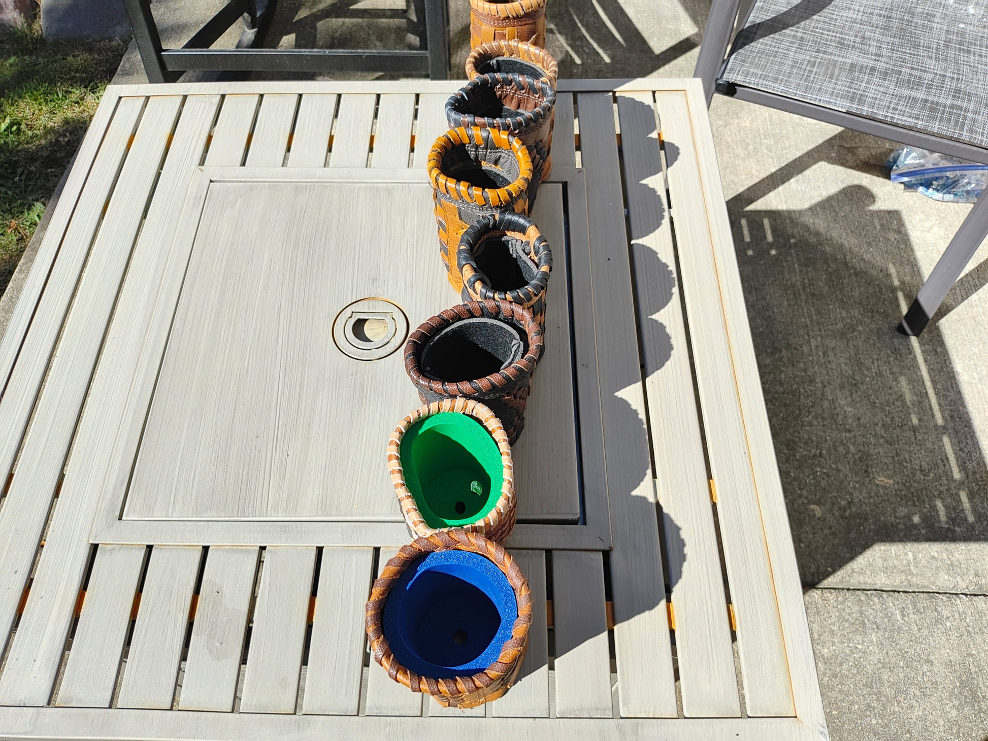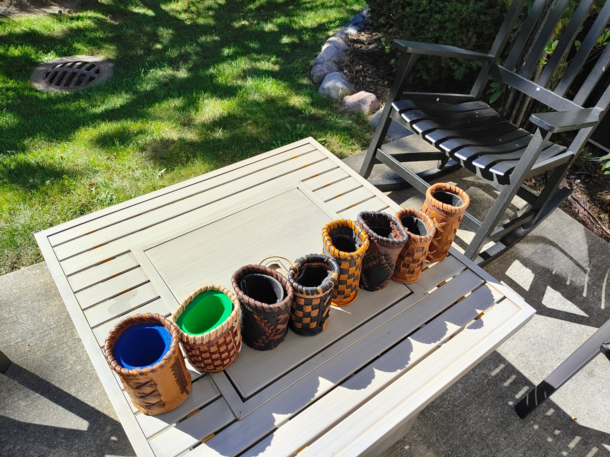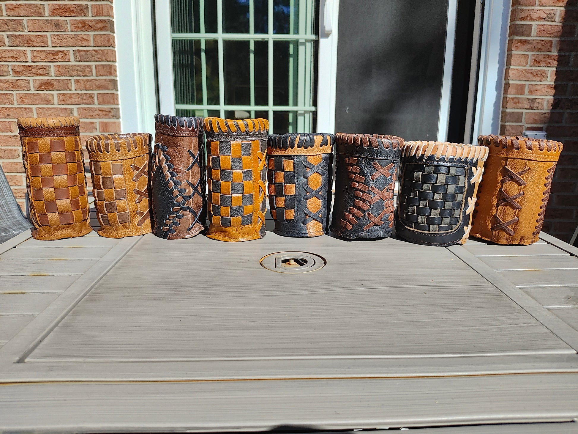 There are eight different styles of coozies in this listing. Please select the volume of your choice. There will be FREE SHIPPING on the 6 and 8 coozie volume orders. These are all 100% real leather coozies. Styles 1, 2, 3, 4, and 5 fit 12oz bottels and tall skinny 10/12oz cans. Styles 6, 7, and 8 fit the standard sized soda or beer cans. You can mix and match different styles. Styles 1 - 6 come with a neoprene liner and styles 7 and 8 come with our thick foam liner.