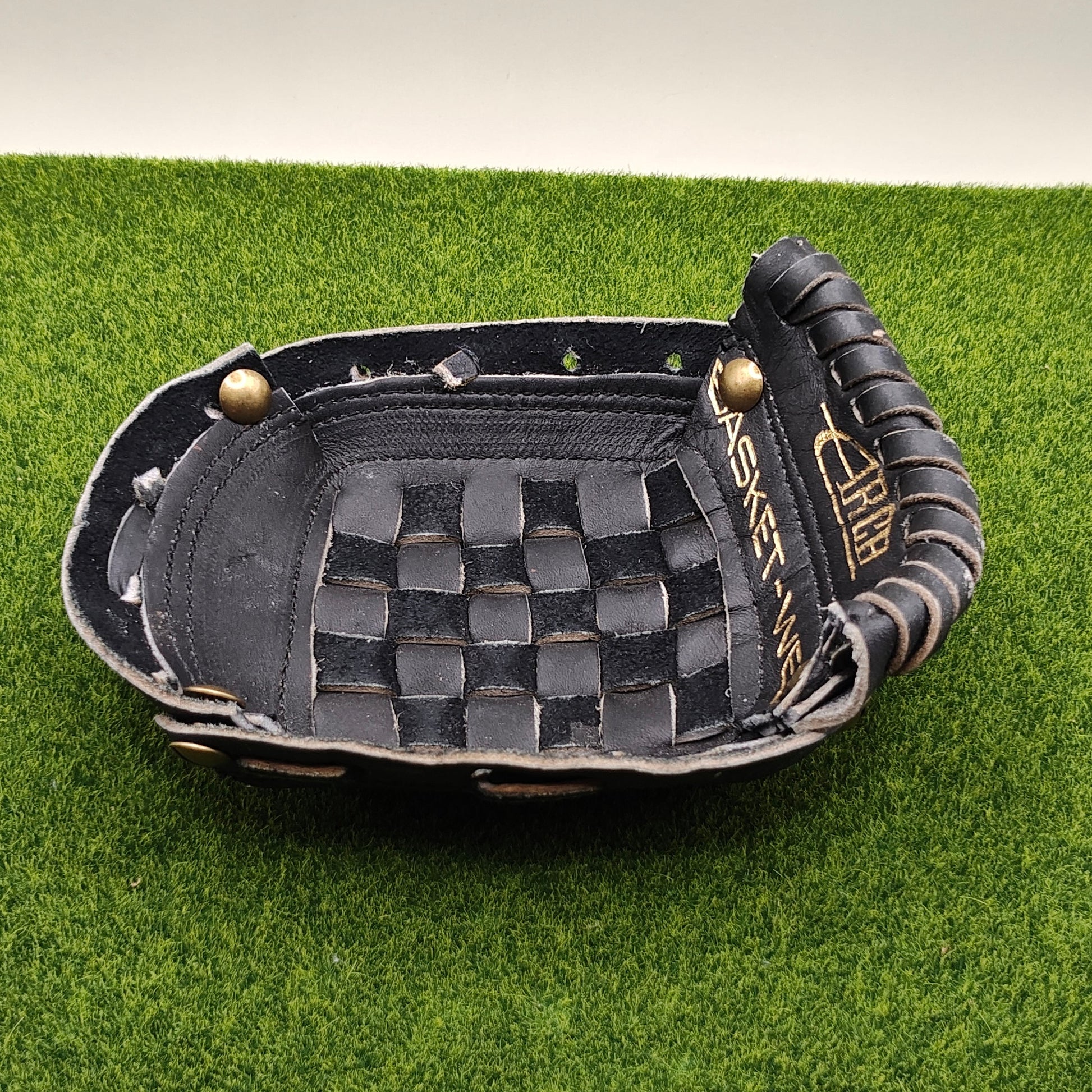 This is a valet tray made from a real vintage baseball glove pocket. This item is a prefect and unique gift for the office, home, or as display piece that could function as a conversation starter. The size and shape is ideal for holding anything from keys, to change, all the way to jewelery, watches. A great piece for any baseball that is looking to organize with vintage baseball flair!